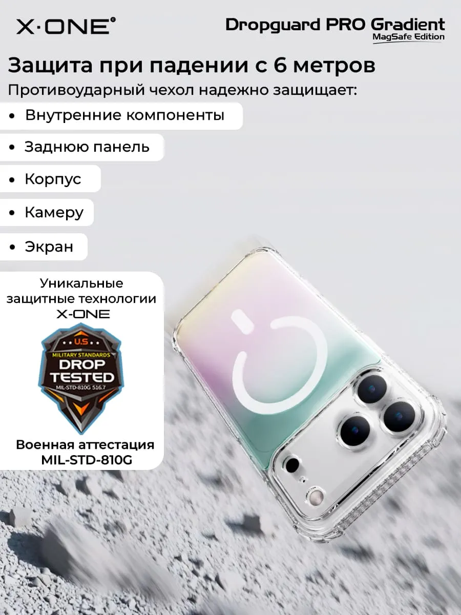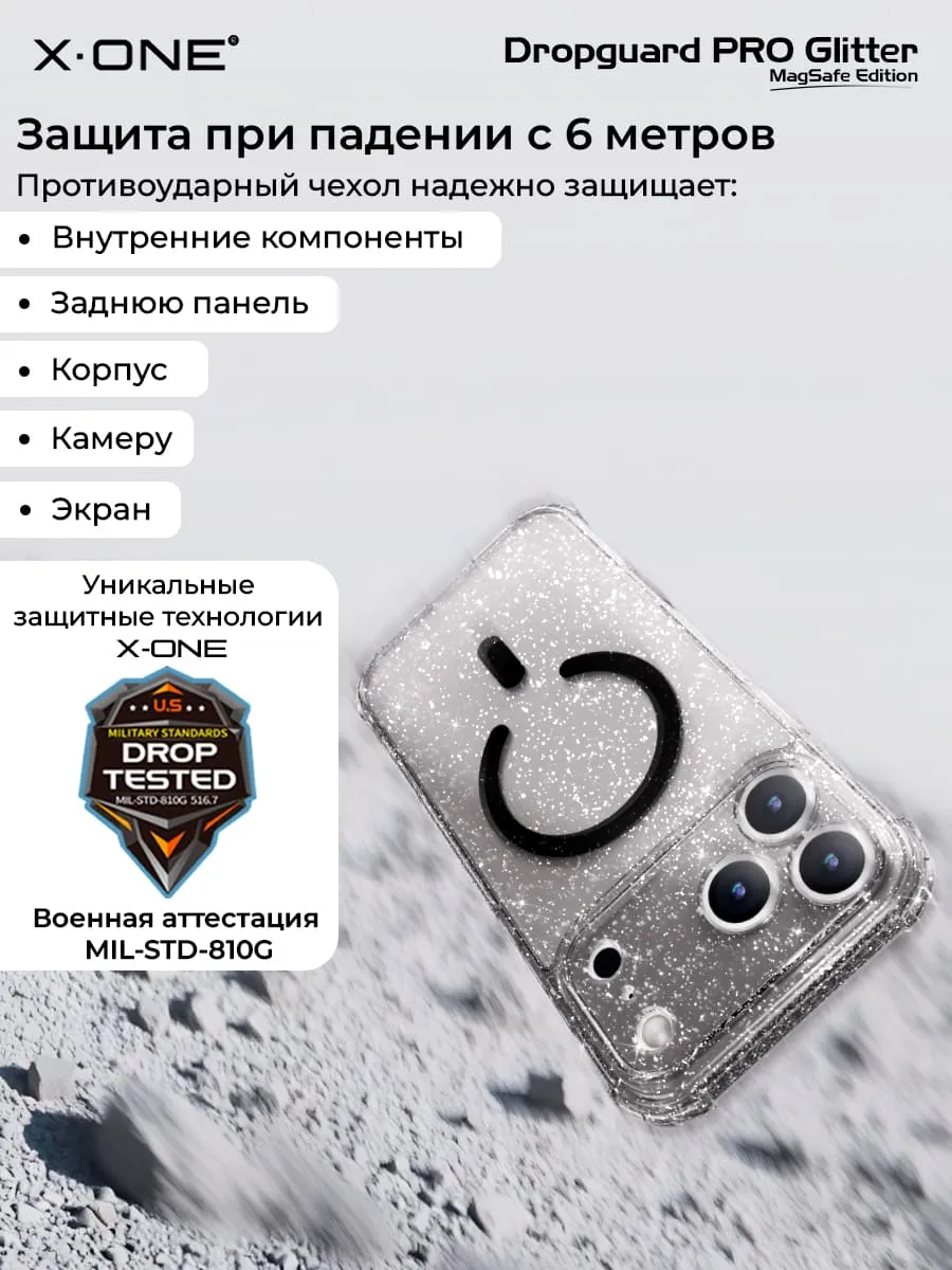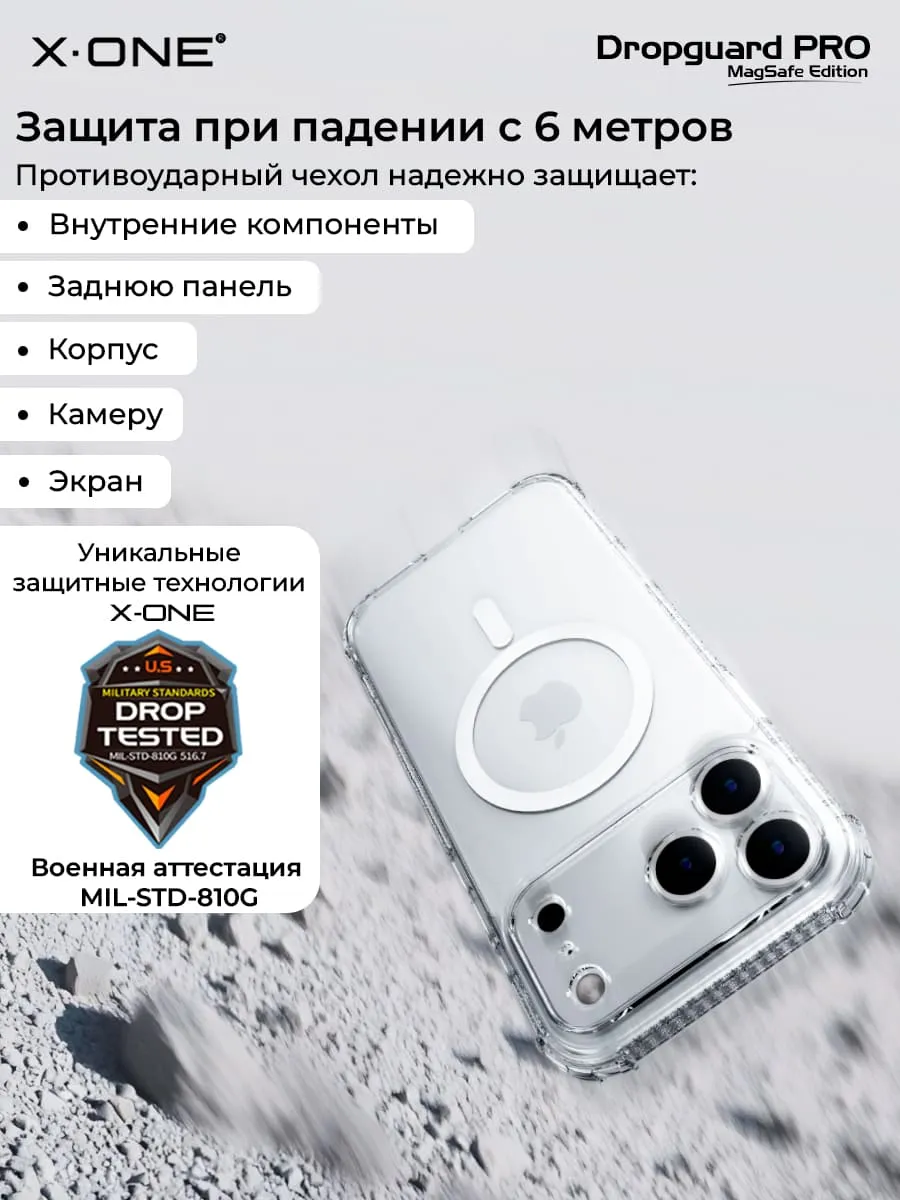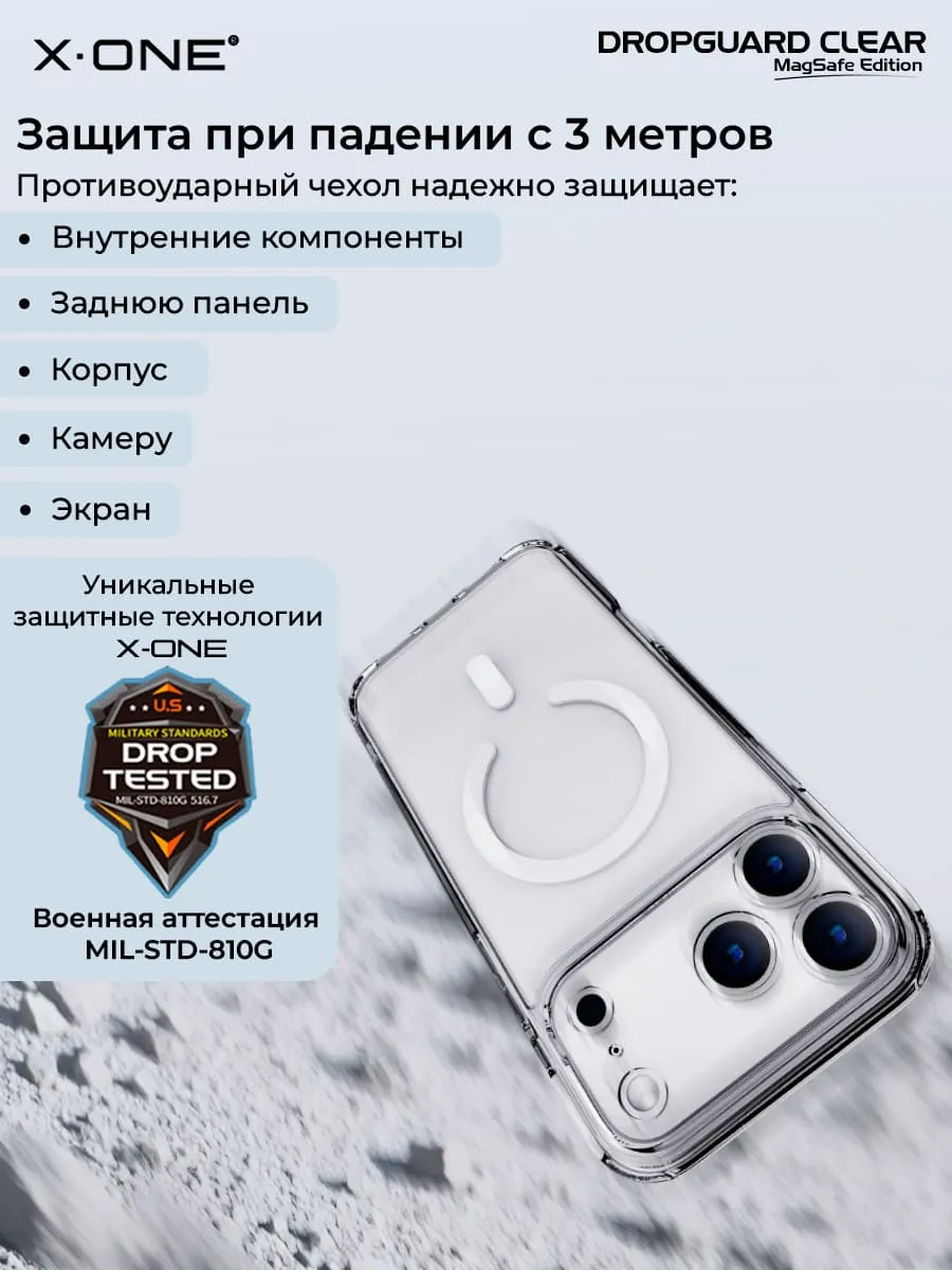 Чехол iPhone 17 Pro Max X-ONE Droguard Clear MagSafe - кристально-прозрачный