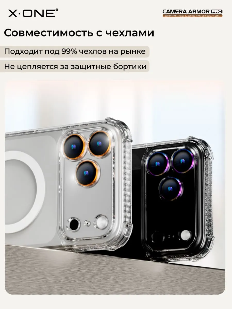 Сапфировое стекло на камеру iPhone 17 Pro/17 Pro Max X-ONE Camera Armor PRO - цвет Silver / линзы / авиа-алюминиевый корпус