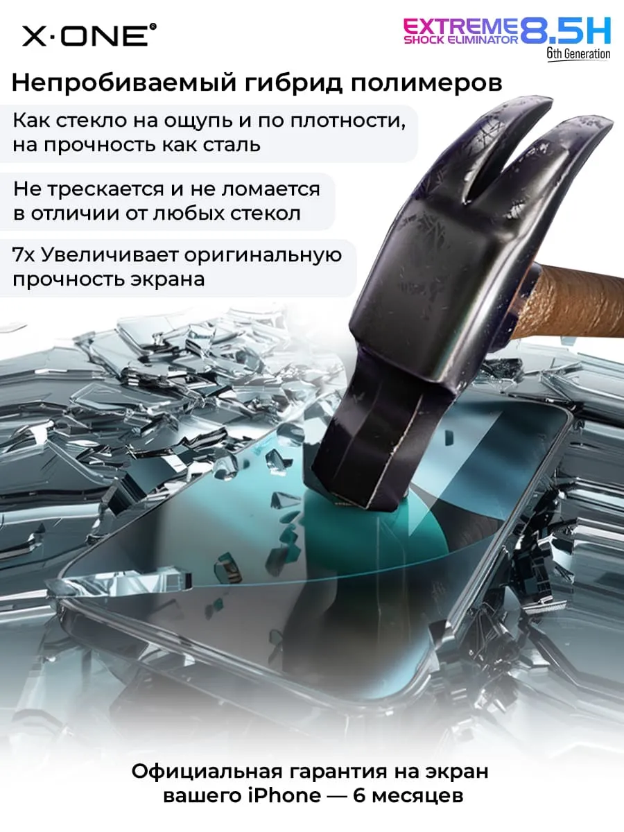 Непробиваемая бронепленка iPhone 17 Pro Max/16 Pro Max X-ONE Extreme Shock Eliminator 6rd-generation с установочным аппликатором