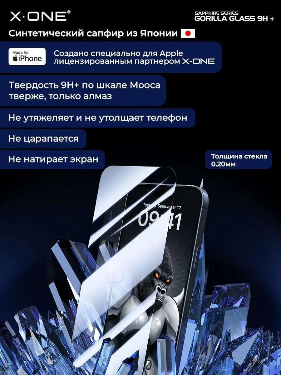 Сапфировое стекло iPhone 17/17 Pro/16 Pro X-ONE Sapphire Series 9H+ / противоударное