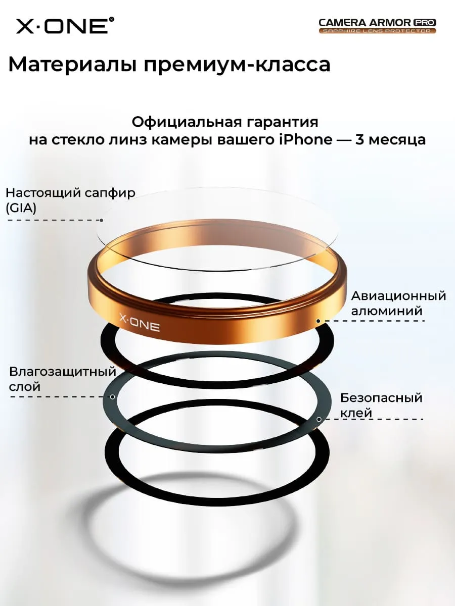 Сапфировое стекло на камеру iPhone 16 Pro/16 Pro Max X-ONE Camera Armor - цвет Colorful/ линзы / авиа-алюминиевый корпус