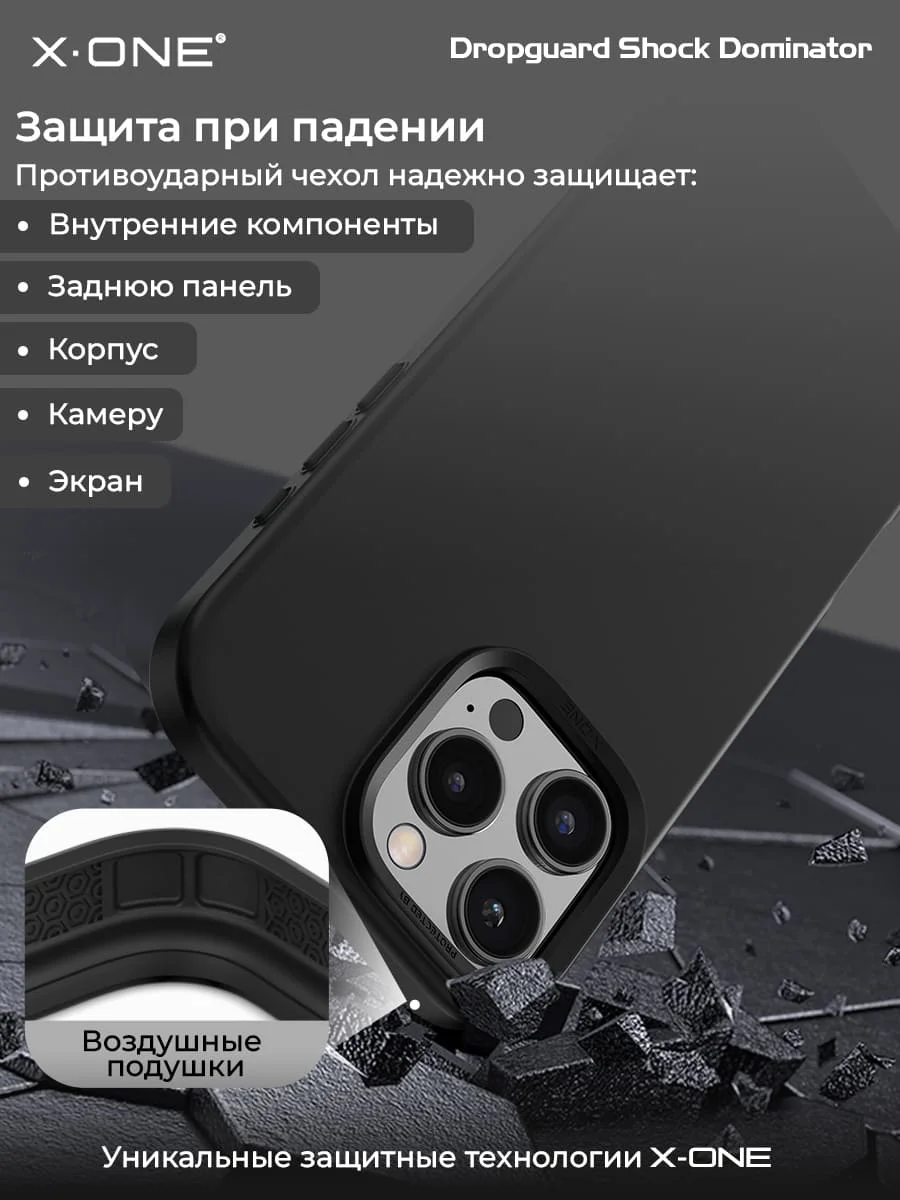 Чехол iPhone 13 Mini X-ONE DropGuard 2S - прозрачная задняя панель и черный матовый Soft Touch бампер