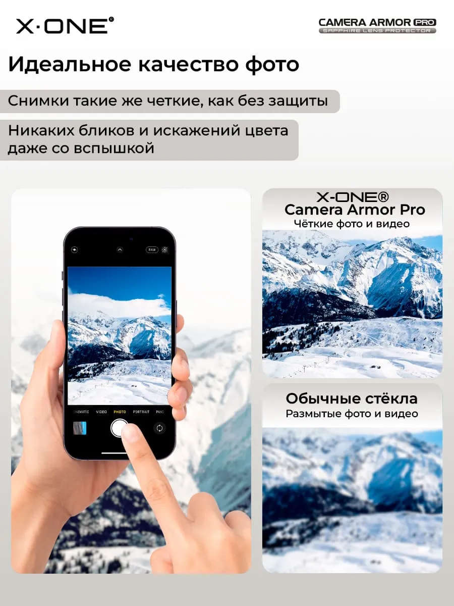 Сапфировое стекло на камеру iPhone 14 Pro/14 Pro Max X-ONE Camera Armor PRO - цвет Silver / линзы / авиа-алюминиевый корпус