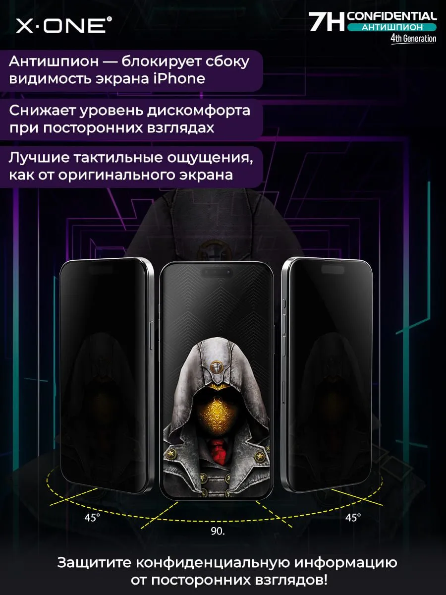 Непробиваемая бронепленка iPhone 14 Pro X-ONE Confidential 4rd-generation - Антишпион / защита от подглядывания
