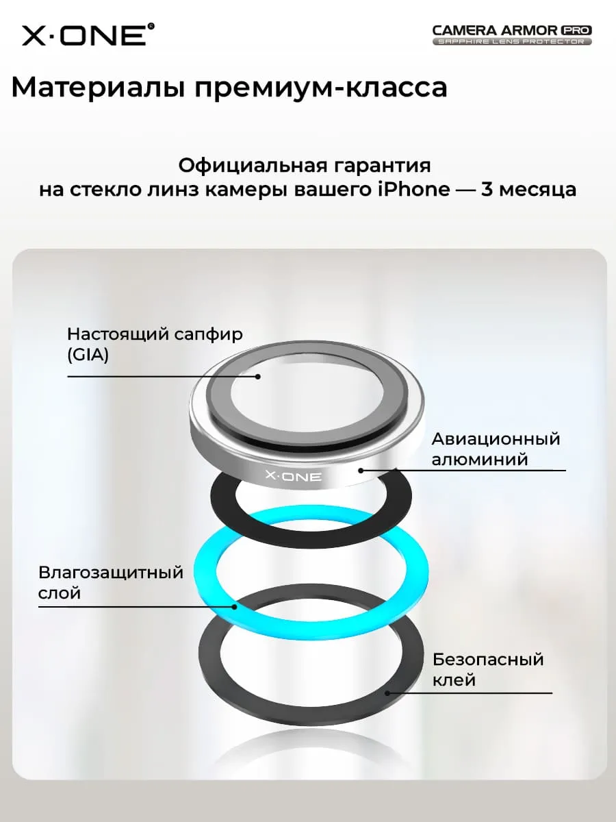 Сапфировое стекло на камеру iPhone 15/15 Plus X-ONE Camera Armor PRO - цвет Blue/ линзы / авиа-алюминиевый корпус
