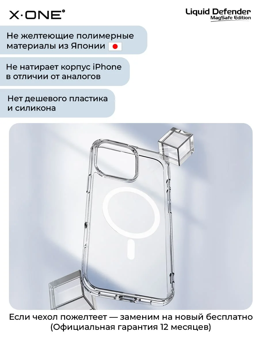 Чехол iPhone 16 Pro X-ONE Liquid Defender MagSafe - кристально-прозрачный