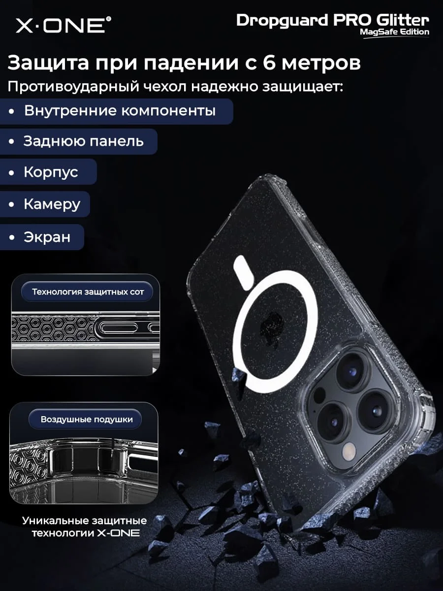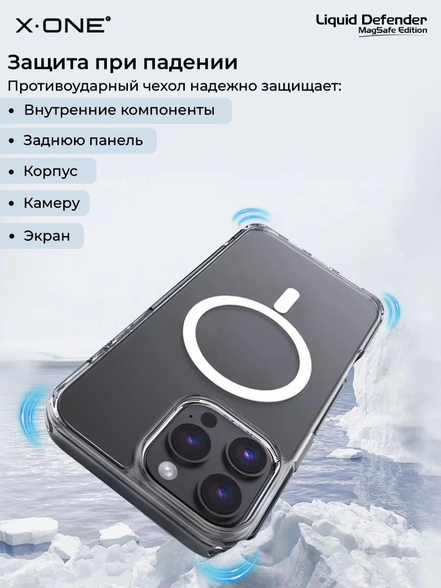 Чехол iPhone 16 Pro Max X-ONE Liquid Defender MagSafe - кристально-прозрачный