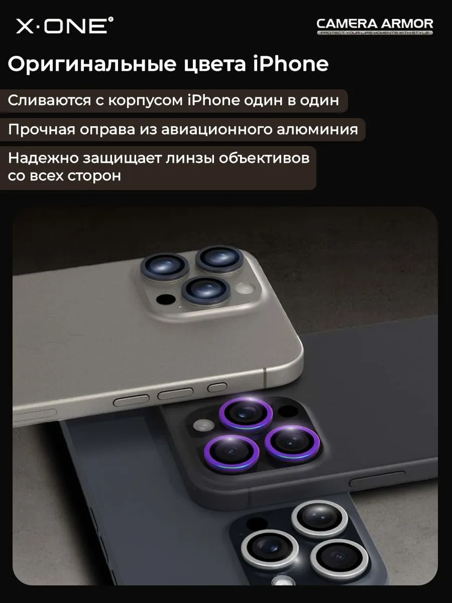 Сапфировое стекло на камеру iPhone 16 Pro/16 Pro Max X-ONE Camera Armor - цвет Colorful/ линзы / авиа-алюминиевый корпус