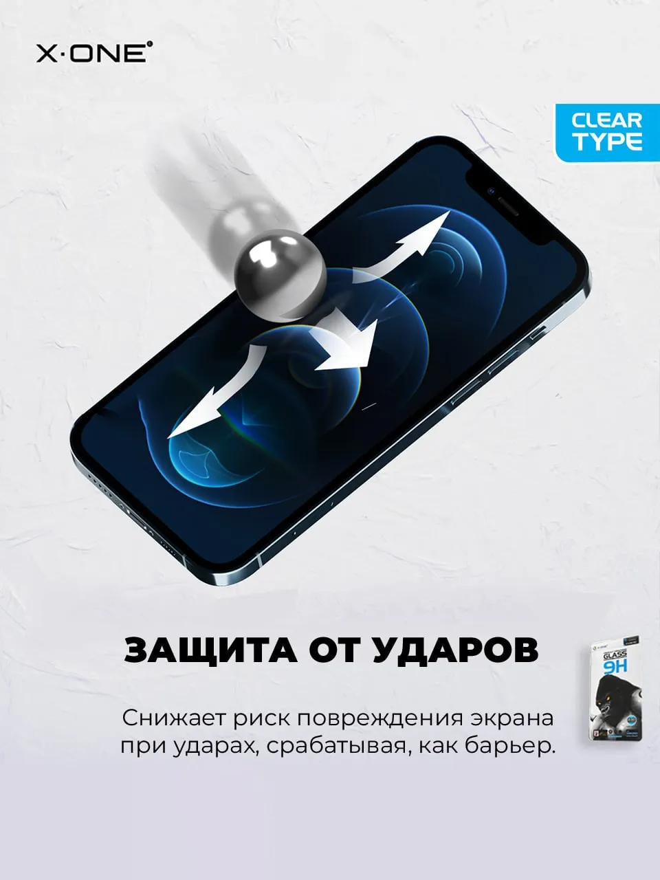 - Комплектация: Фирменный кейс - упаковка X-ONE, защитное стекло - 1 шт., салфетка из микрофибры - 1 шт., салфетка спиртовая - 1 шт., стикеры пылесборные/установочные, QR код с видео-инструкцией по установке на упаковке