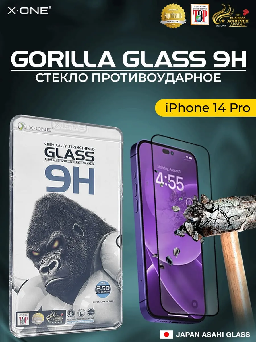 Защитное стекло iPhone 14 Pro X-ONE 9H / противоударное