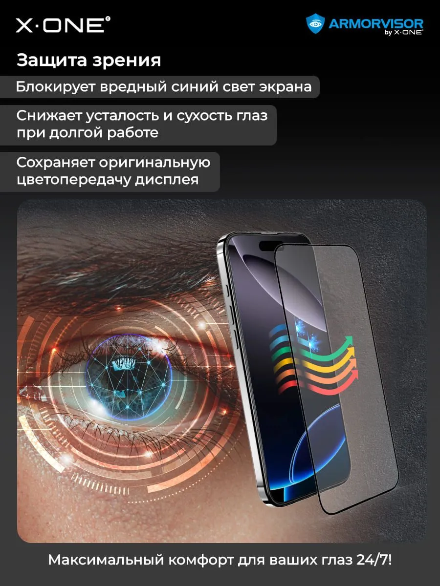 Непробиваемая бронепленка iPhone 14 Plus /13 Pro Max X-ONE Armorvisor 4rd-generation / фильтрация УФ излучения / защита зрения