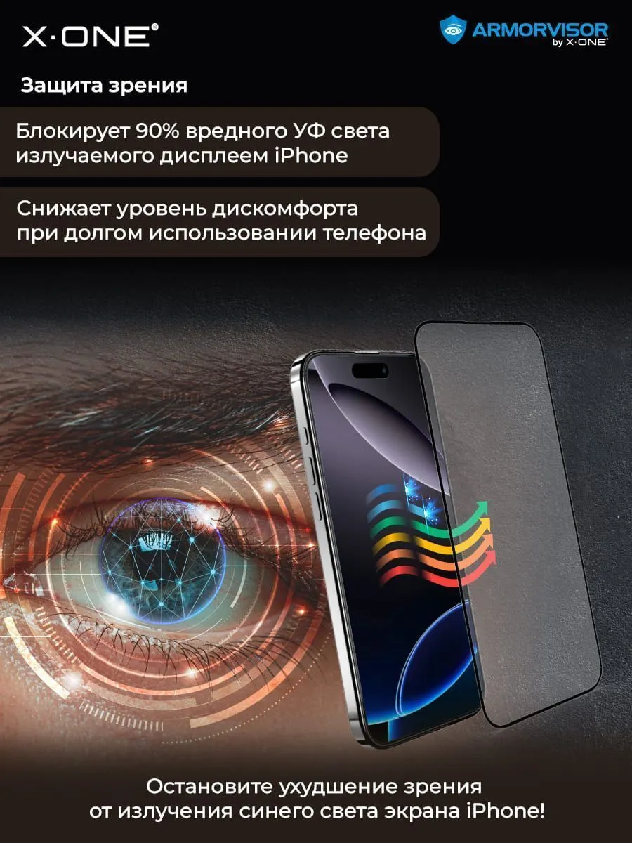 Непробиваемая бронепленка iPhone 17/17 Pro/16 Pro X-ONE Armorvisor 4rd-generation / фильтрация УФ излучения / защита зрения