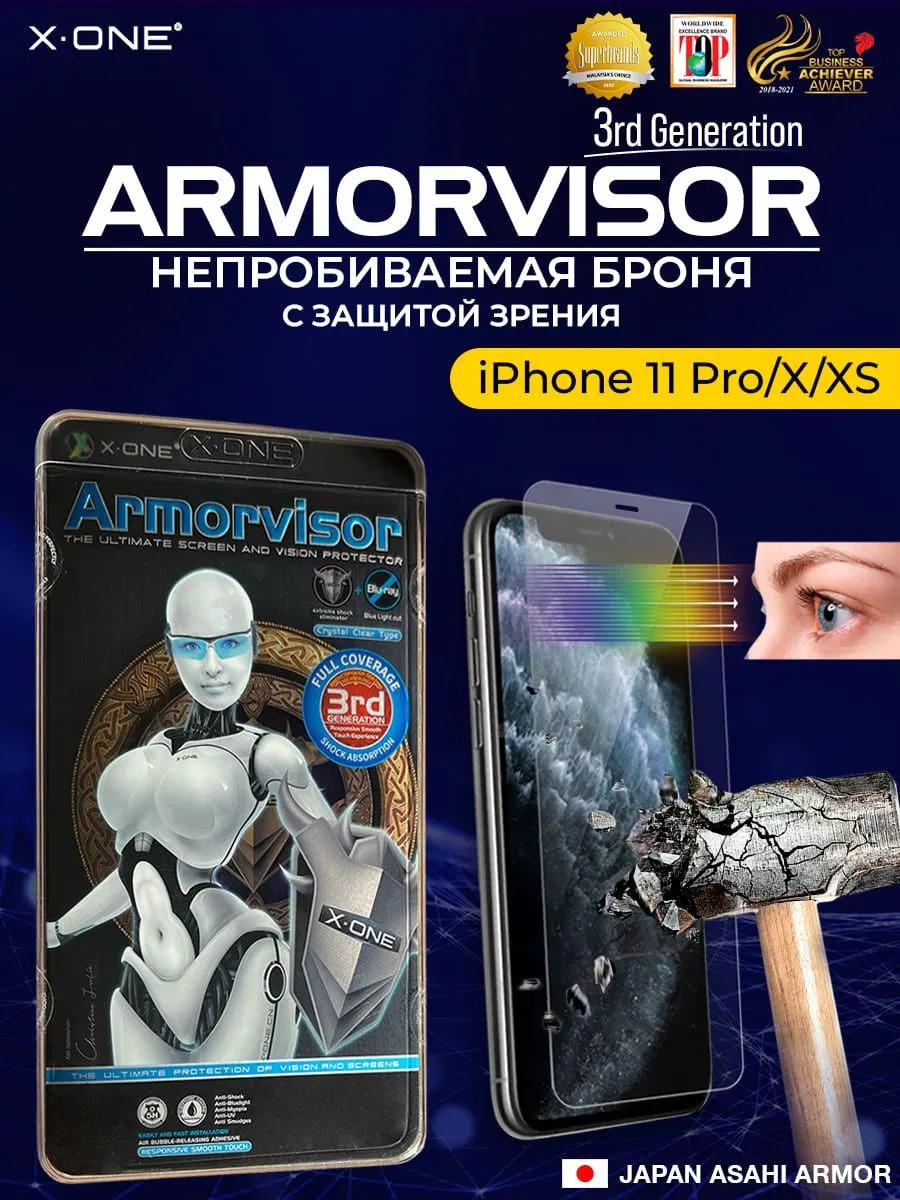 Непробиваемая бронепленка iPhone 11 Pro/X/XS X-ONE Armorvisor 3rd-generation / фильтрация УФ излучения / защита зрения