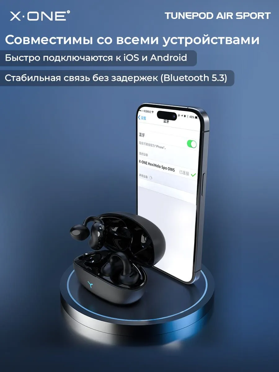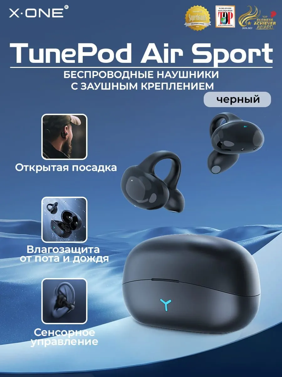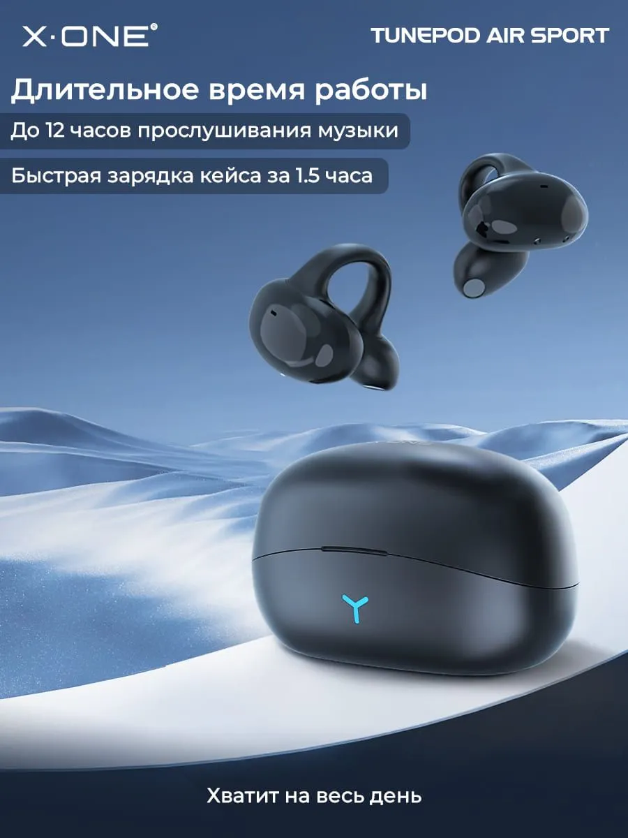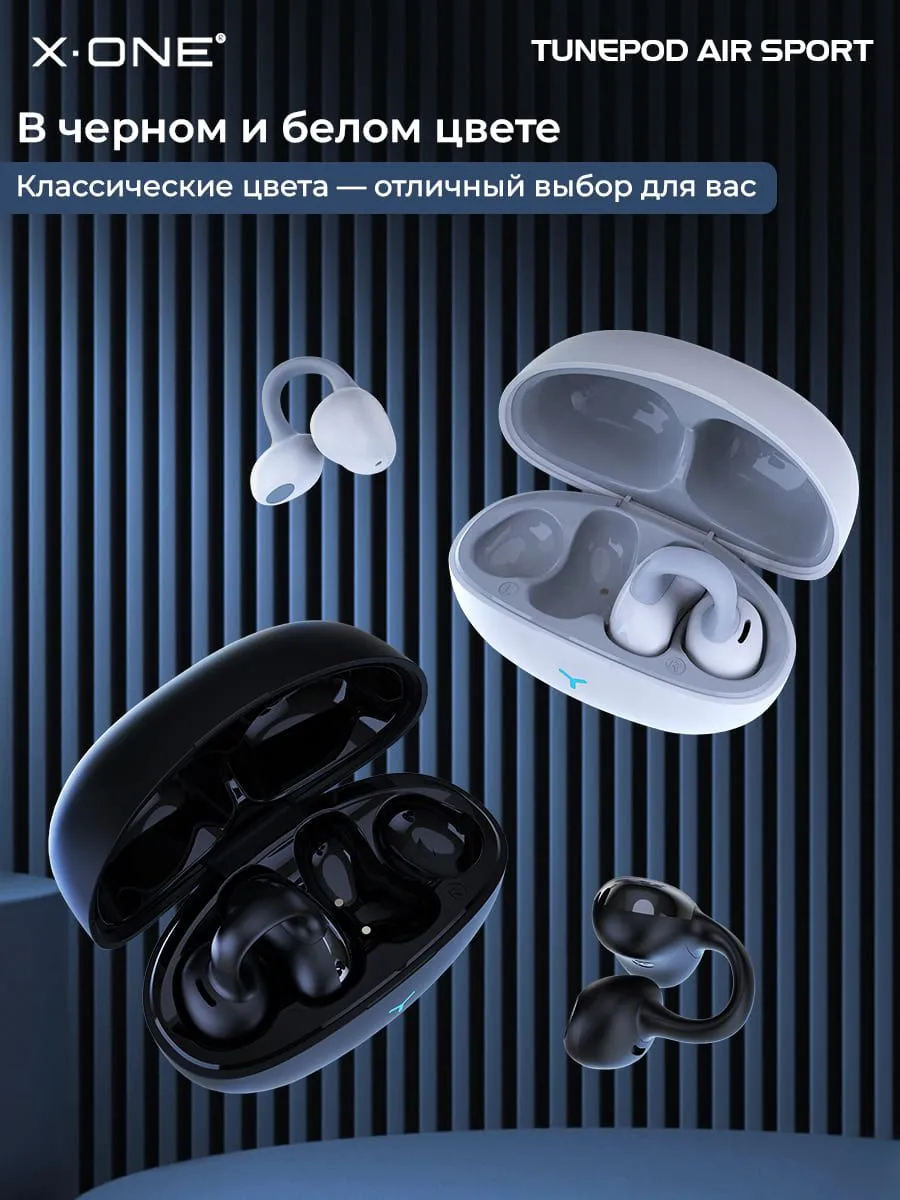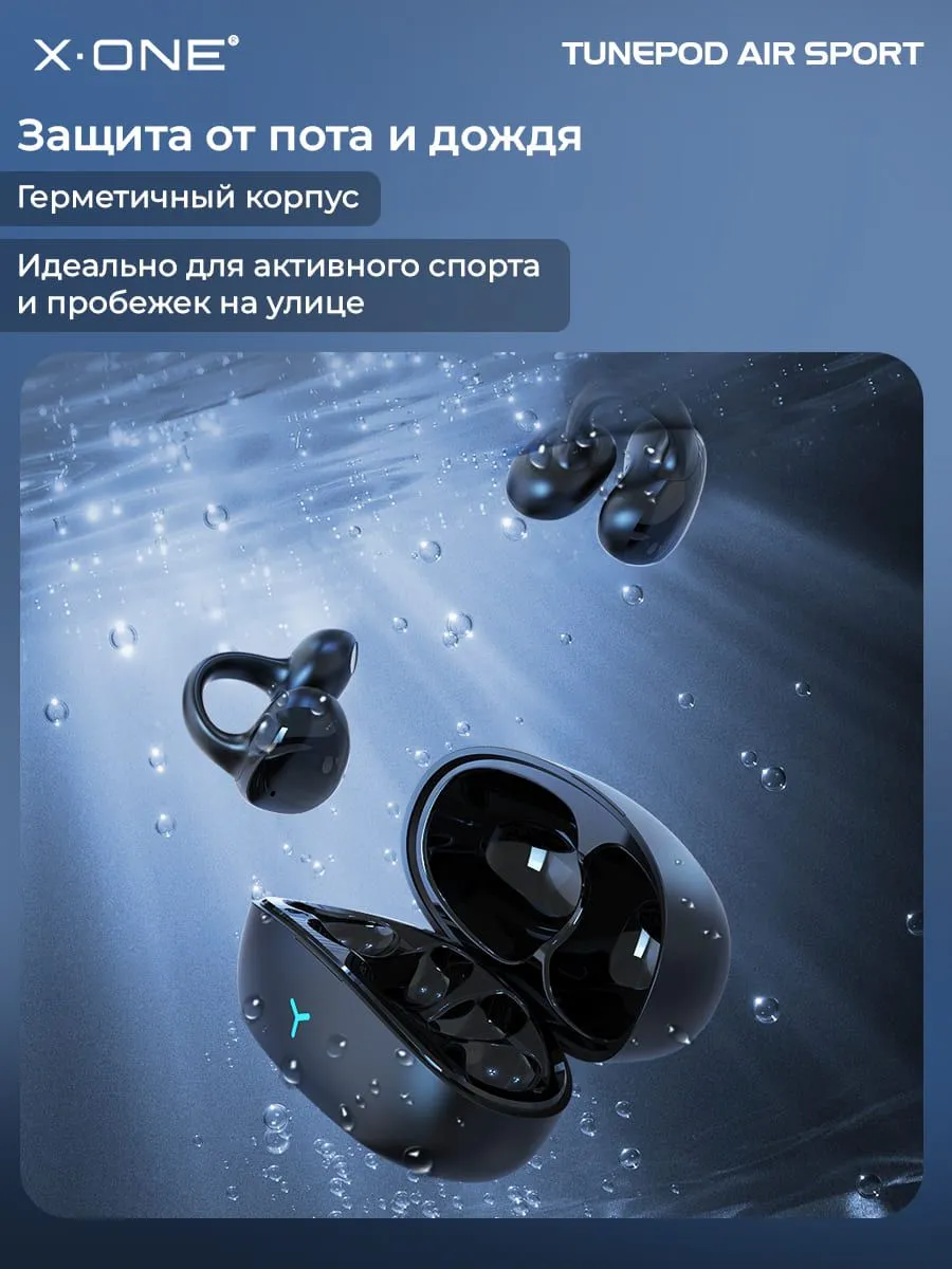Наушники беспроводные X-ONE TunePod Air SPORT - черный цвет, заушное крепление, внутриканальные, Bluetooth, 5.3