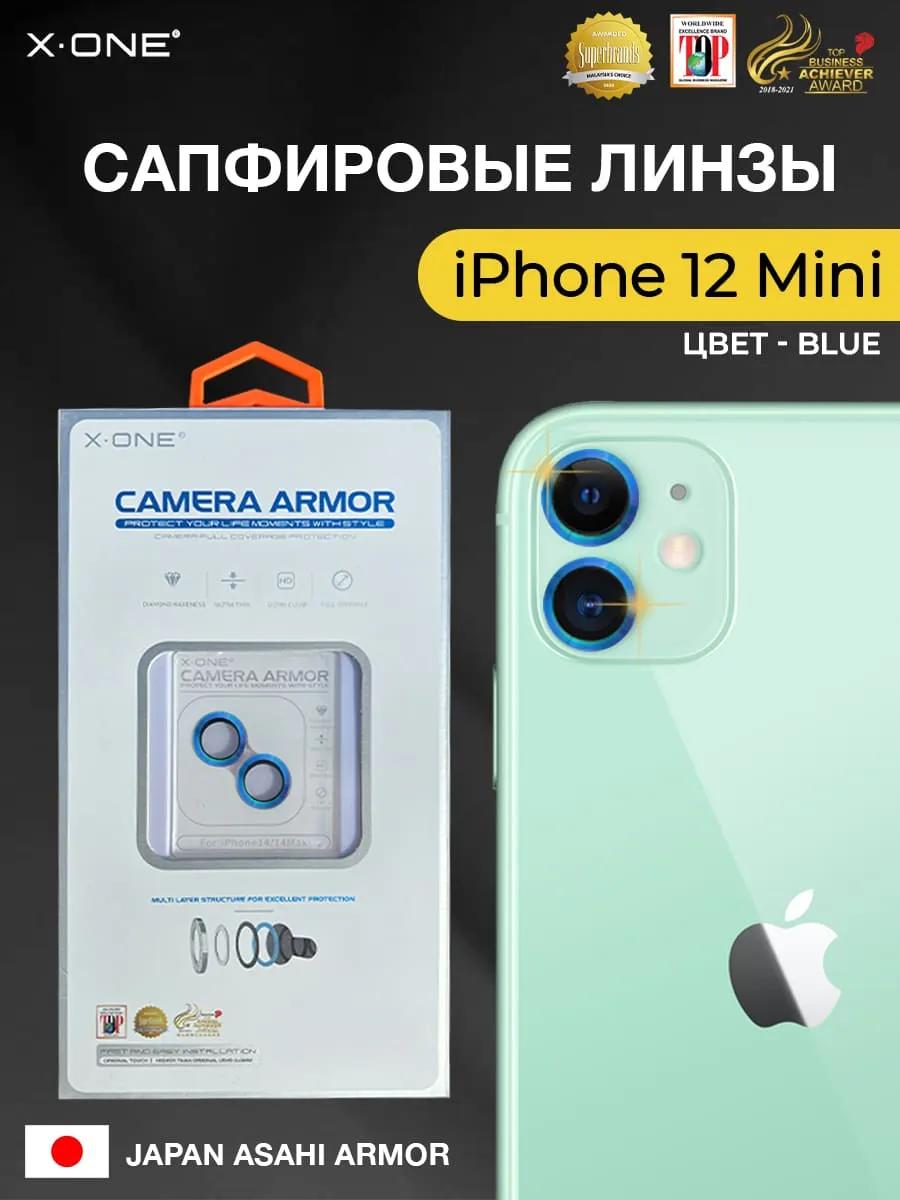 Сапфировое стекло на камеру iPhone 12/12 Mini/11 X-ONE Camera Armor - цвет Blue / линзы / авиа-алюминиевый корпус