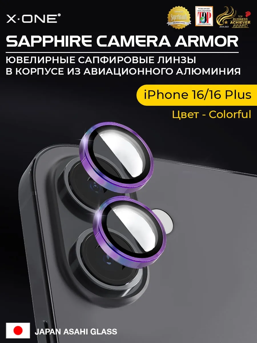 Сапфировое стекло на камеру iPhone 16/16 Plus X-ONE Camera Armor - цвет Colorful/ линзы / авиа-алюминиевый корпус