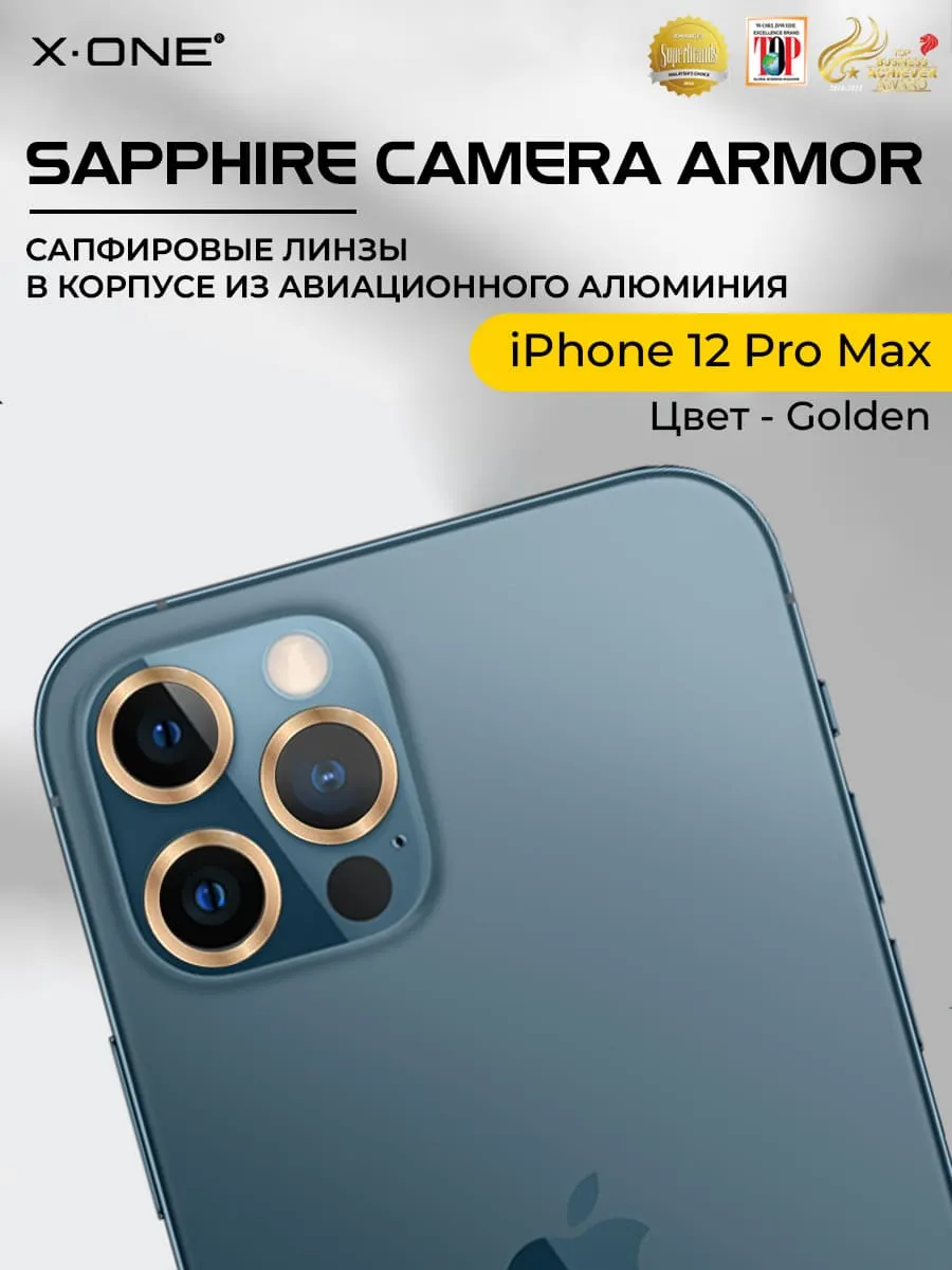 Сапфировое стекло на камеру iPhone 12 Pro Max X-ONE Camera Armor - цвет Golden / линзы / авиа-алюминиевый корпус