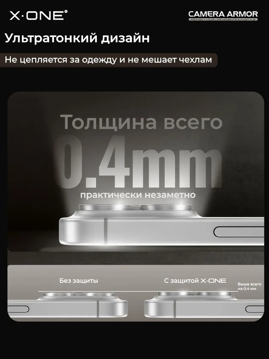 Сапфировые линзы на камеру с гарантией на стекла линз камеры вашего iPhone - 3 месяца X-ONE Sapphire Camera Armor с алмазной крошкой в диффузоре из авиационного алюминия.