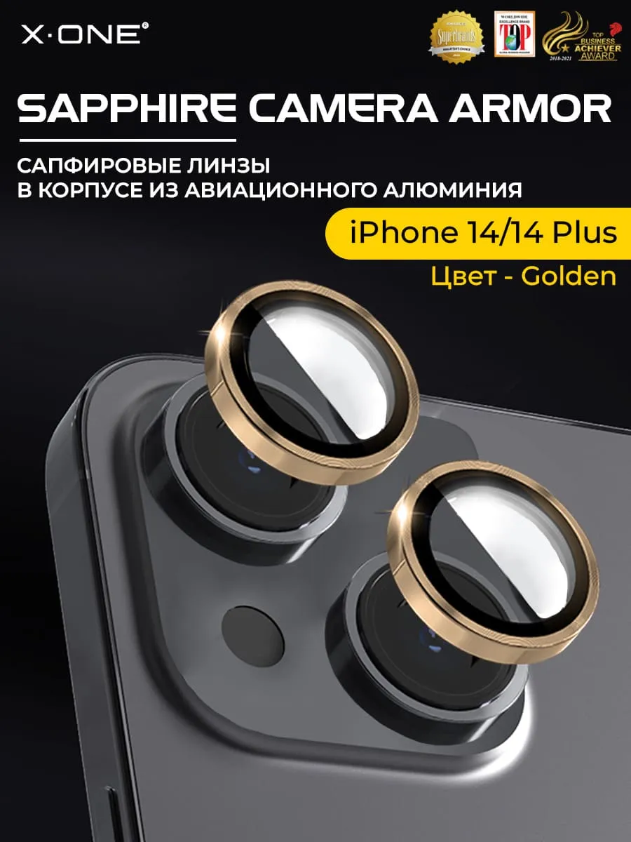 Сапфировое стекло на камеру iPhone 14/14 Plus X-ONE Camera Armor - цвет Golden / линзы / авиа-алюминиевый корпус