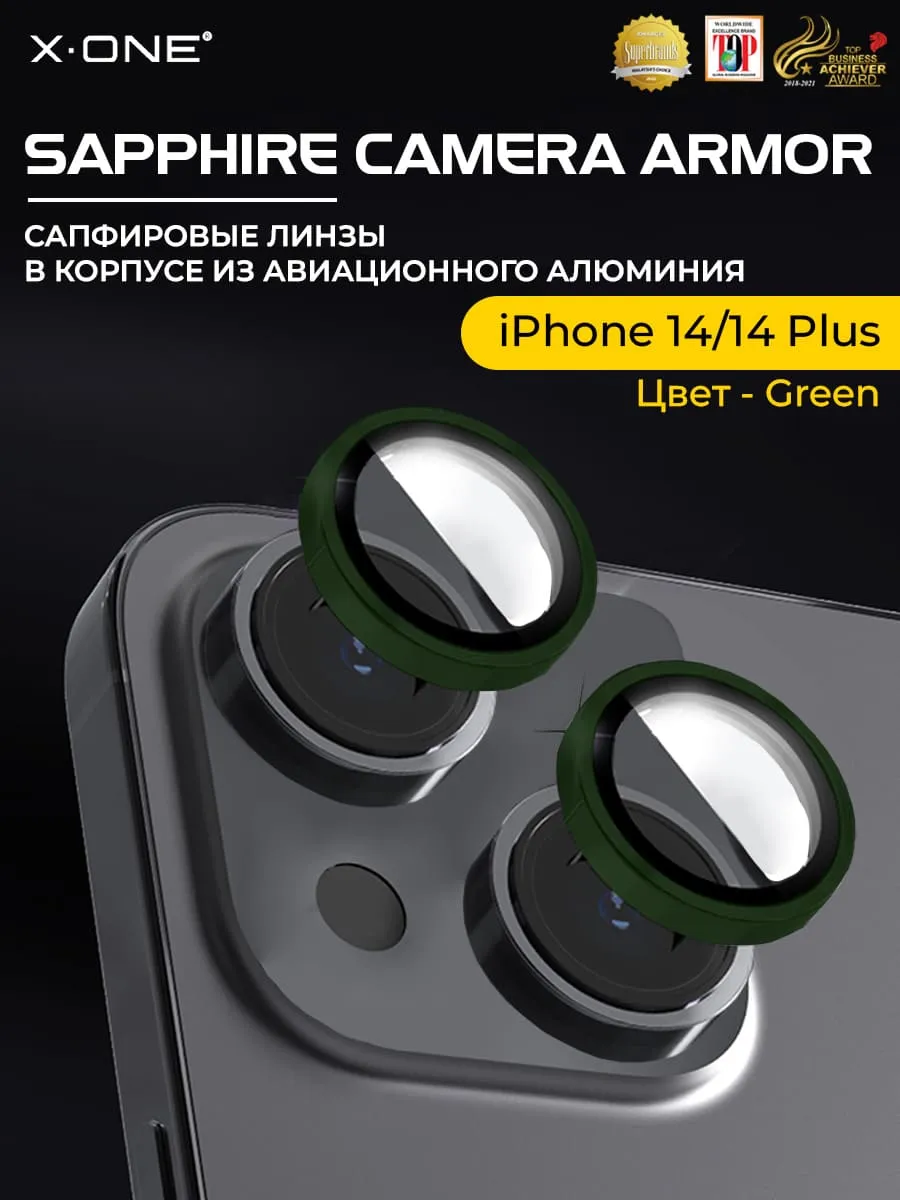 Сапфировое стекло на камеру iPhone 14/14 Plus X-ONE Camera Armor - цвет Green / линзы / авиа-алюминиевый корпус