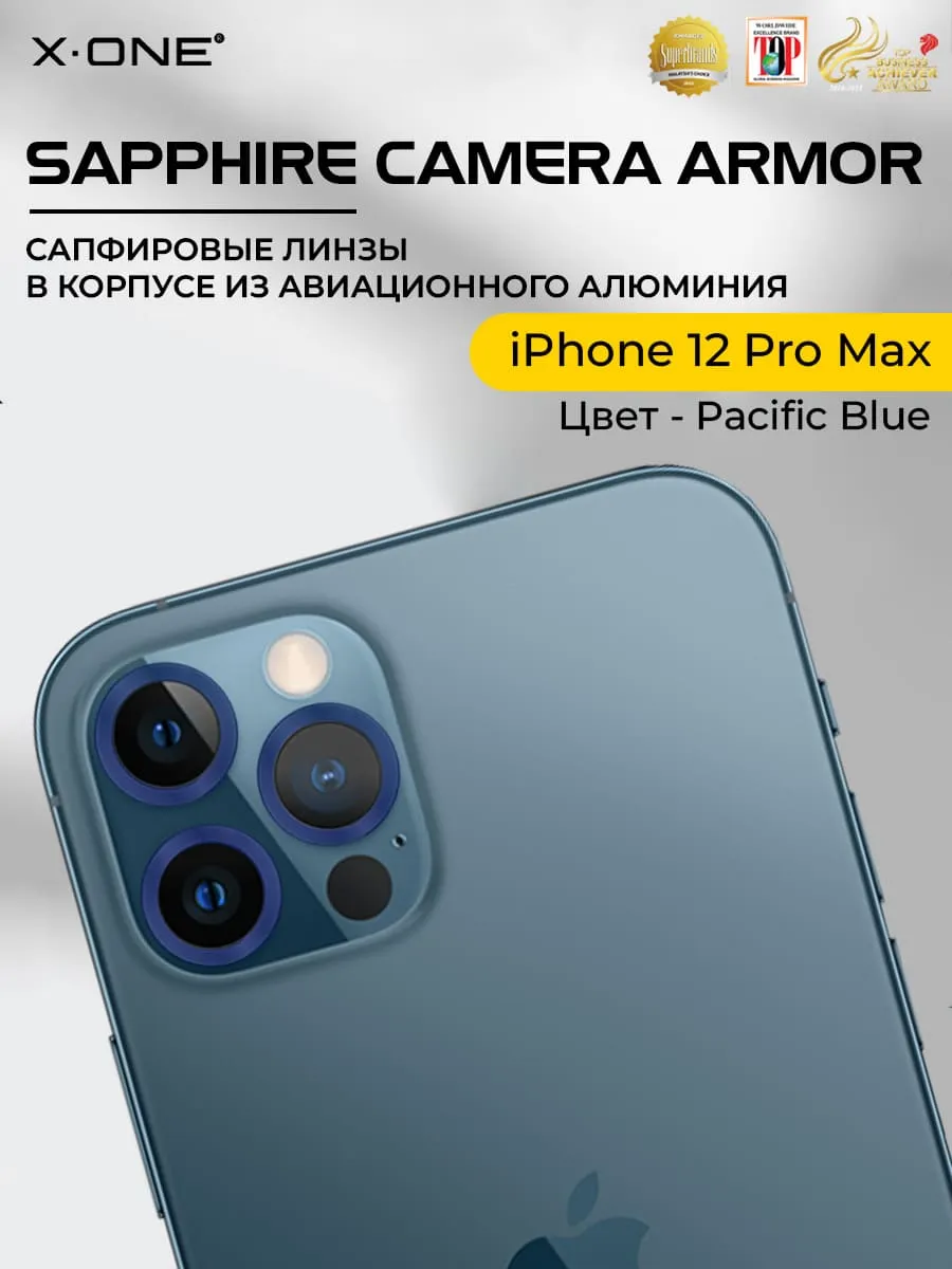 Сапфировое стекло на камеру iPhone 12 Pro Max X-ONE Camera Armor - цвет Pacific Blue / линзы / авиа-алюминиевый корпус