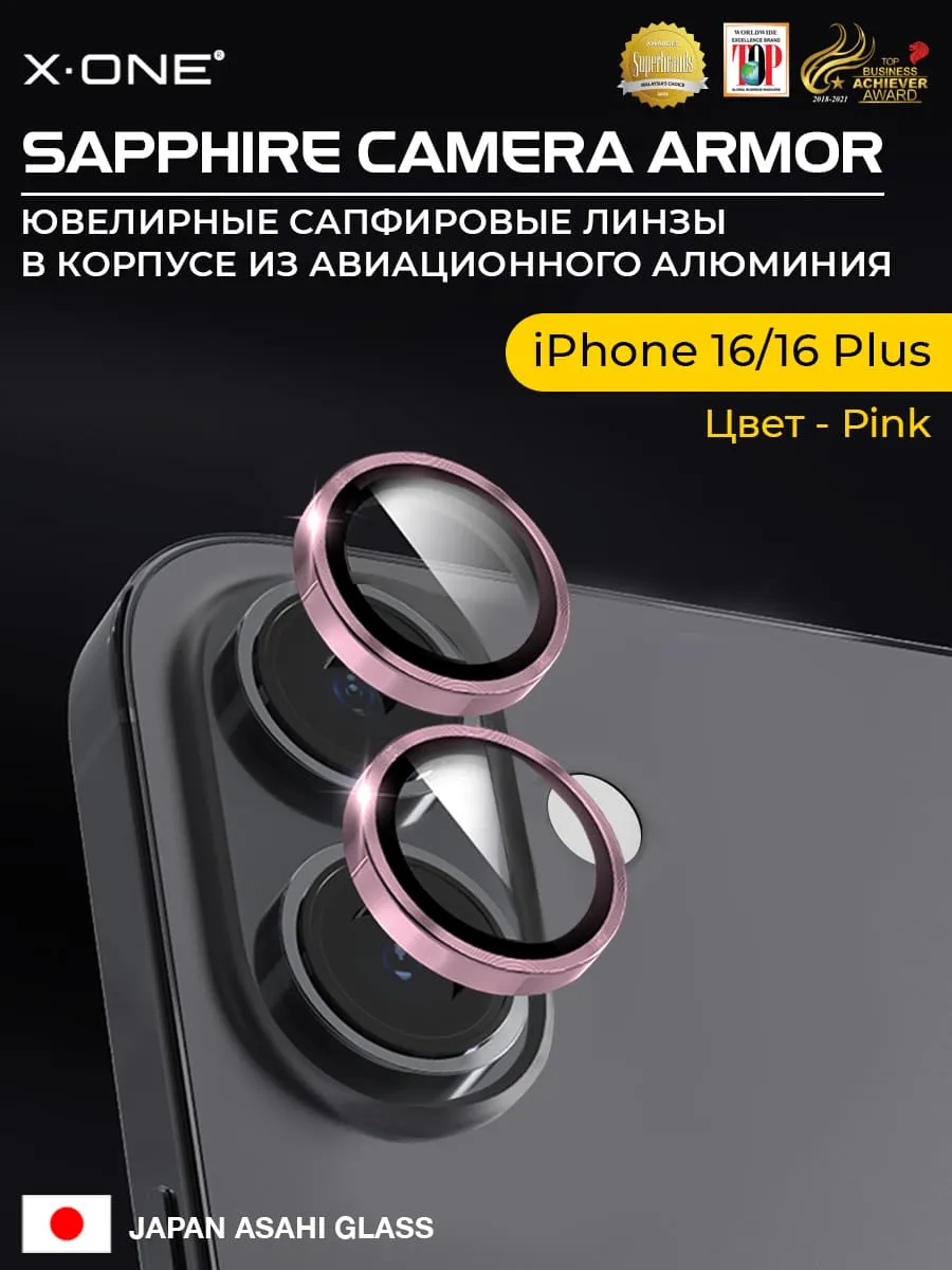 Сапфировое стекло на камеру iPhone 16/16 Plus X-ONE Camera Armor - цвет Pink / линзы / авиа-алюминиевый корпус
