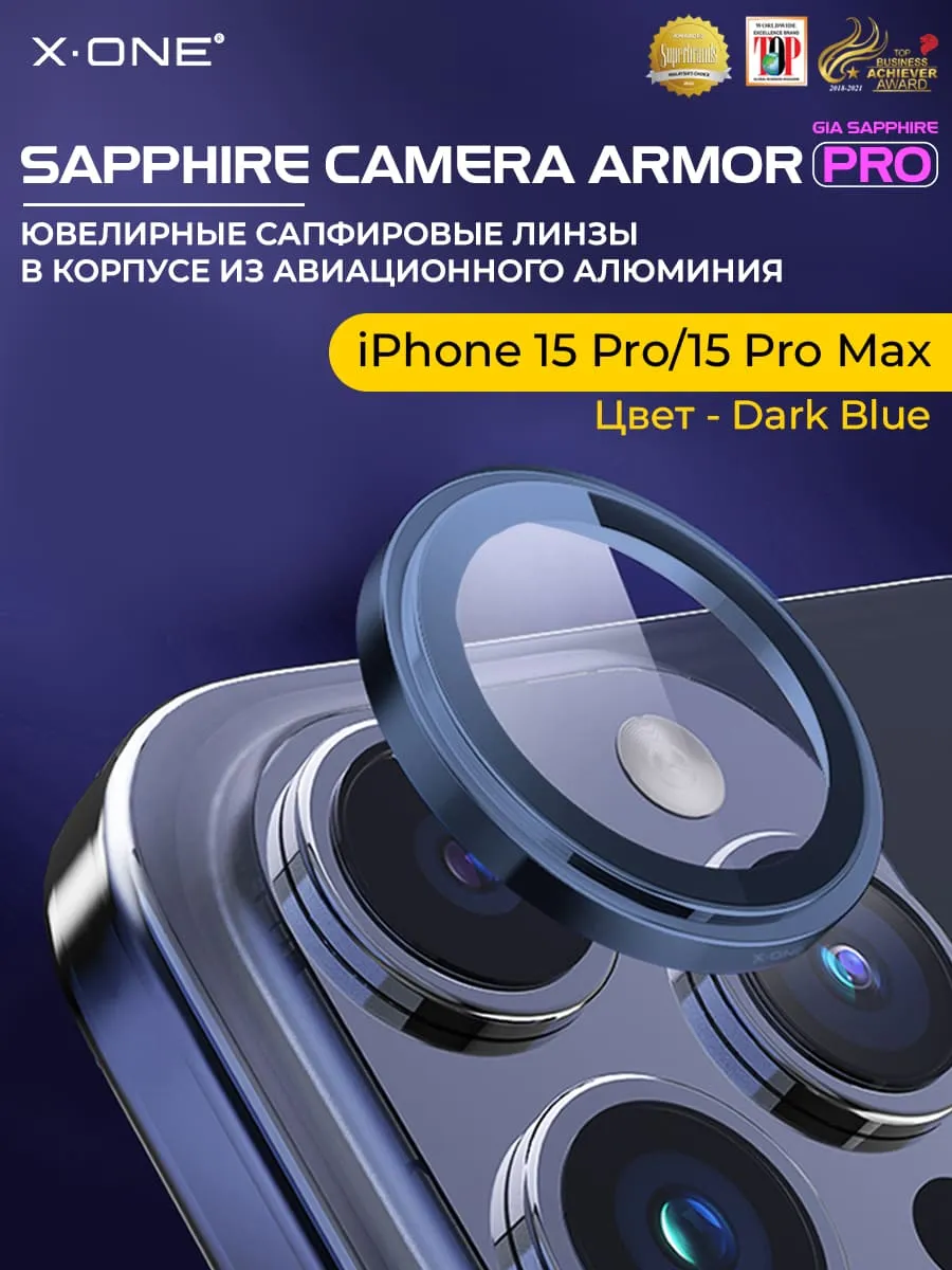 Сапфировое стекло на камеру iPhone 15 Pro/15 Pro Max X-ONE Camera Armor PRO - цвет Dark Blue/ линзы / авиа-алюминиевый корпус