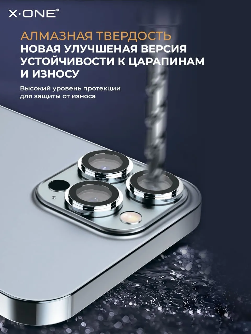 Ювелирное сапфировое стекло X-ONE Sapphire Camera Armor PRO с алмазной крошкой в диффузоре из авиационного алюминия.
