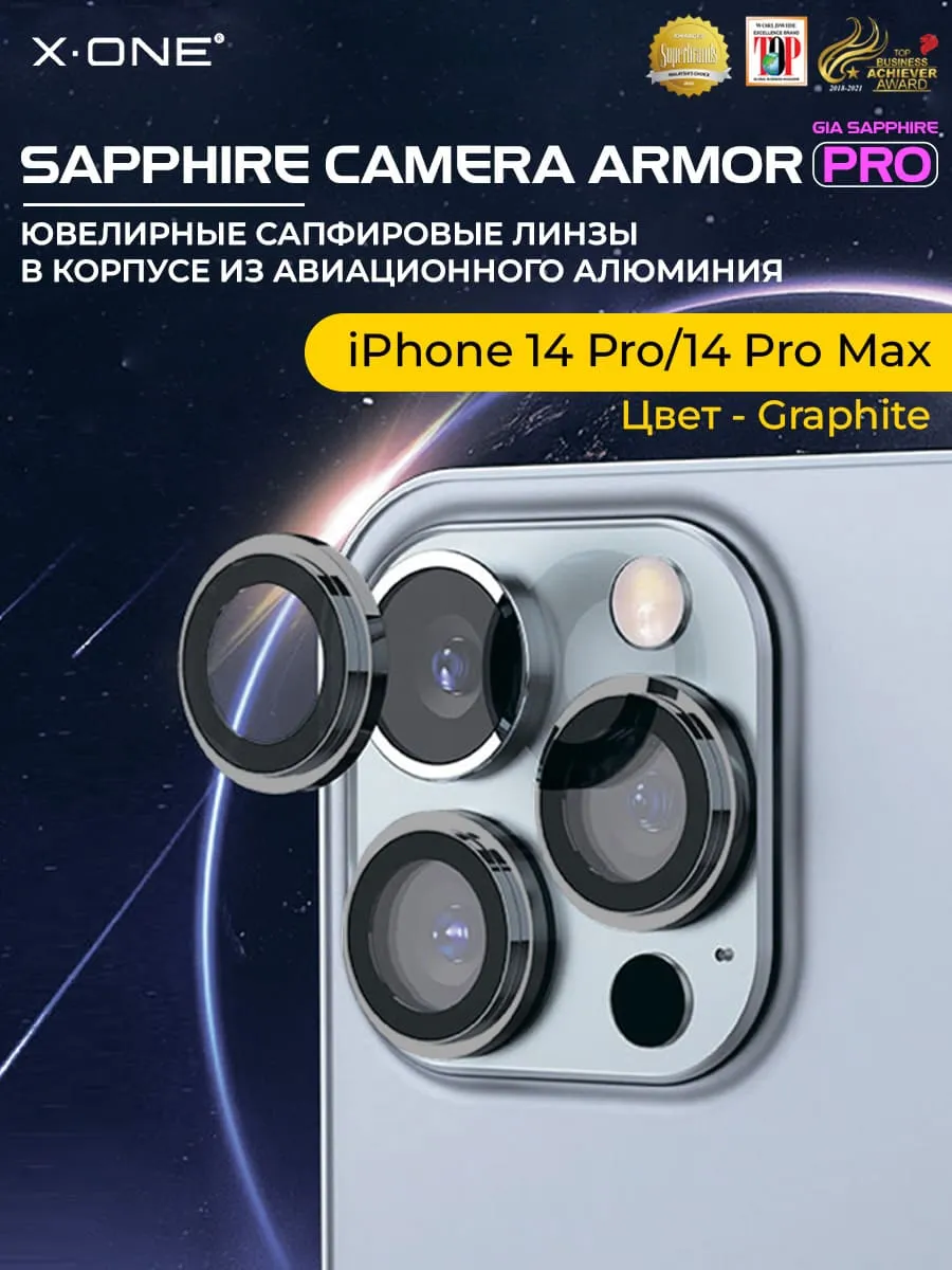 Сапфировое стекло на камеру iPhone 14 Pro/14 Pro Max X-ONE Camera Armor PRO - цвет Graphite / линзы / авиа-алюминиевый корпус