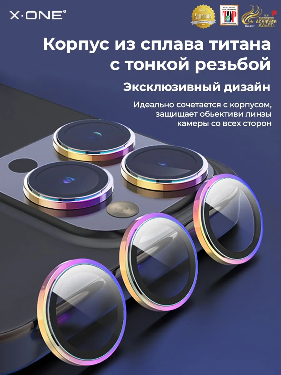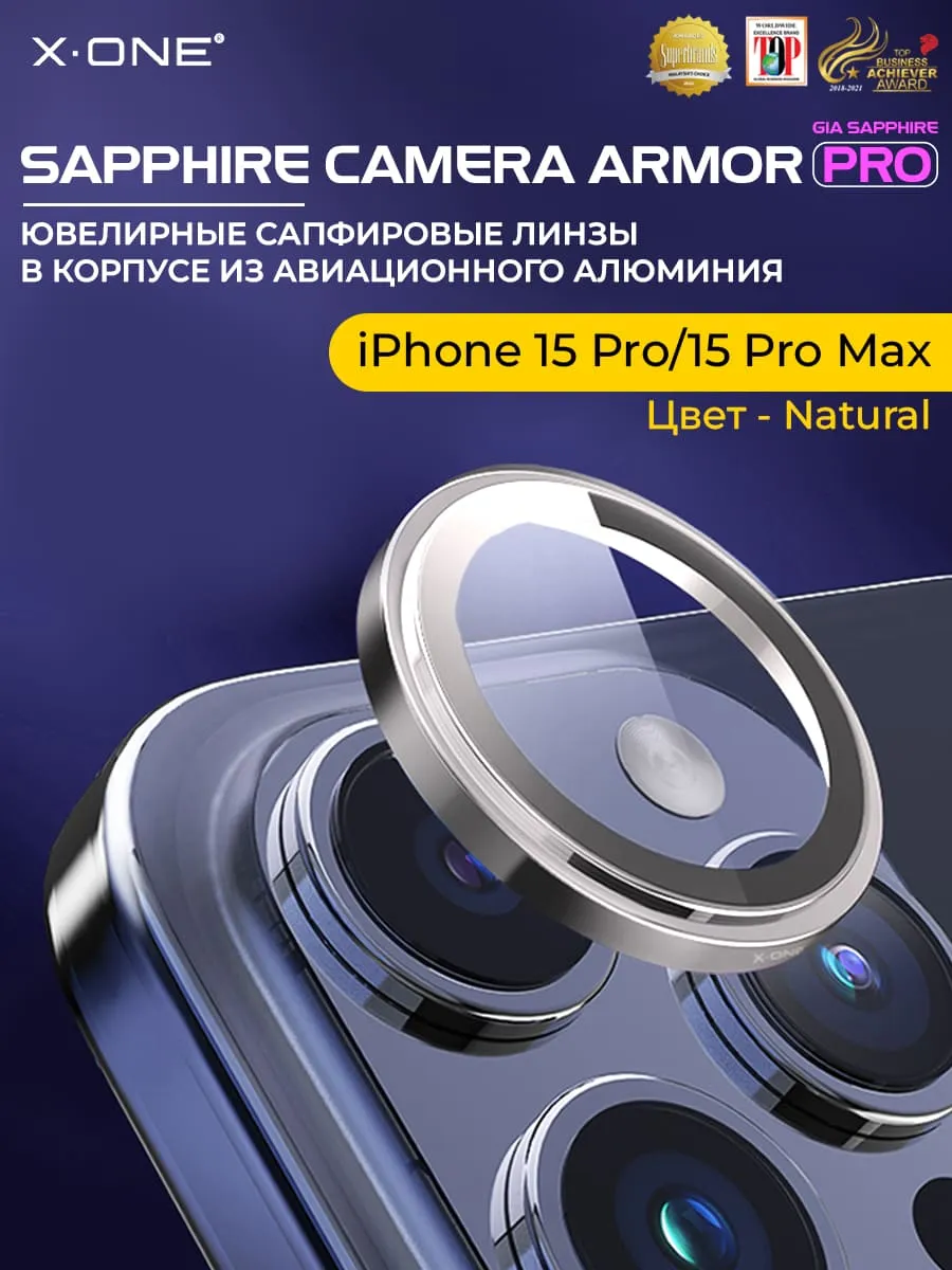 Сапфировое стекло на камеру iPhone 15 Pro/15 Pro Max X-ONE Camera Armor PRO - цвет Natural / линзы / авиа-алюминиевый корпус