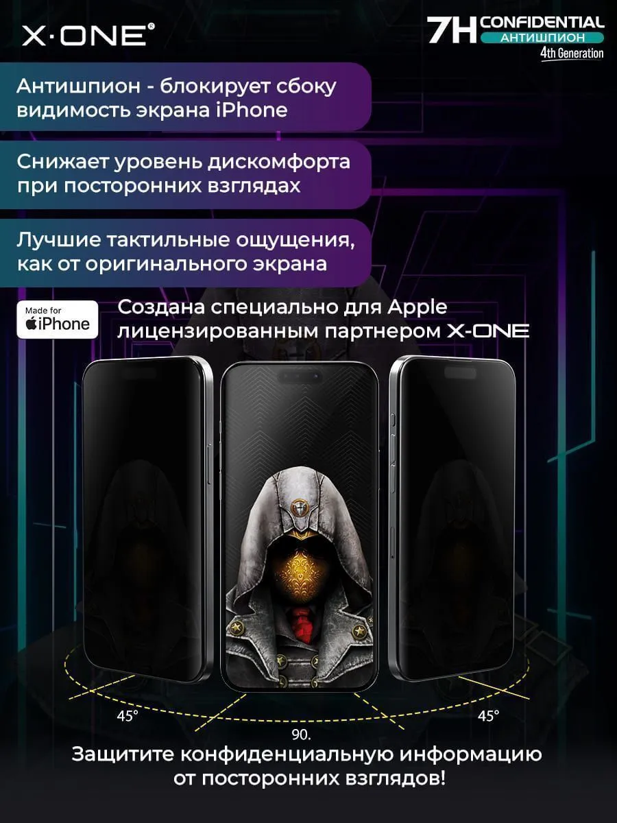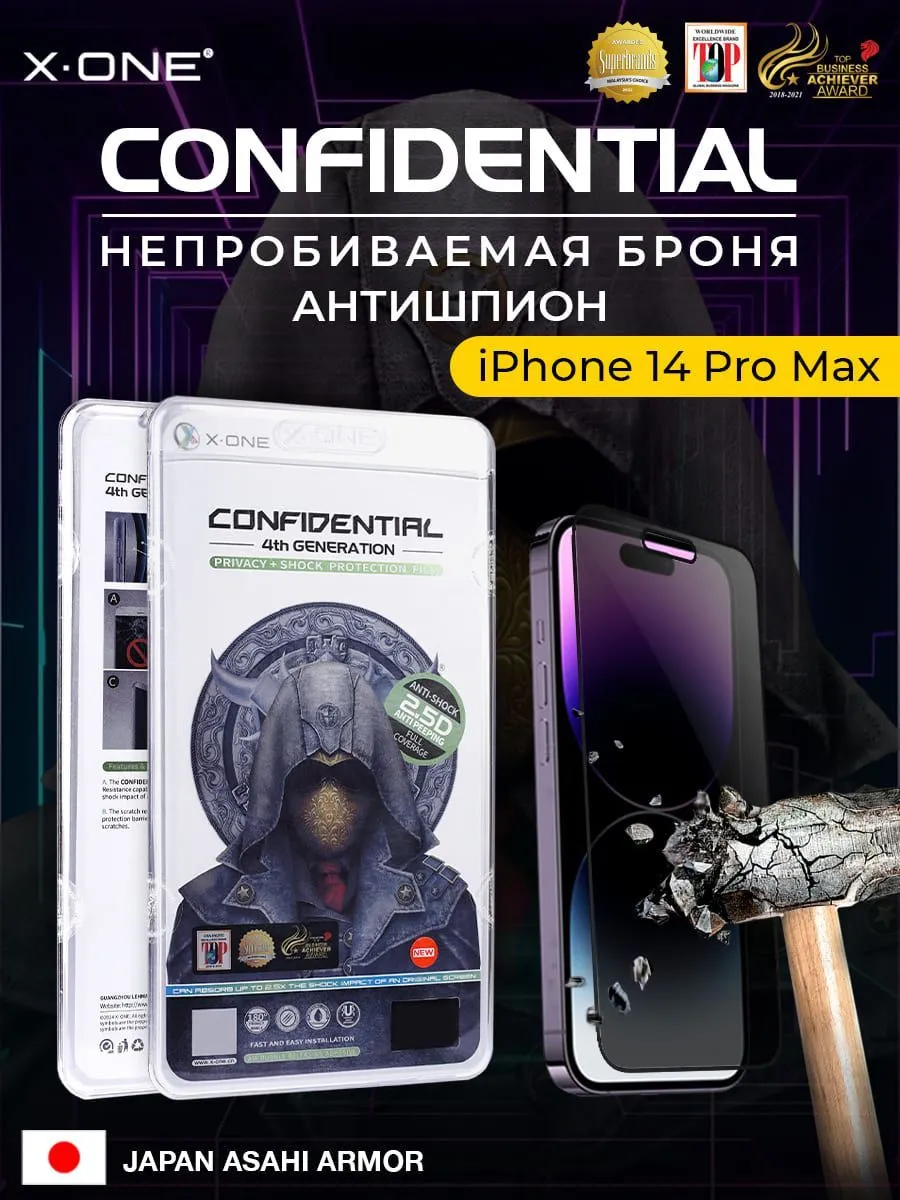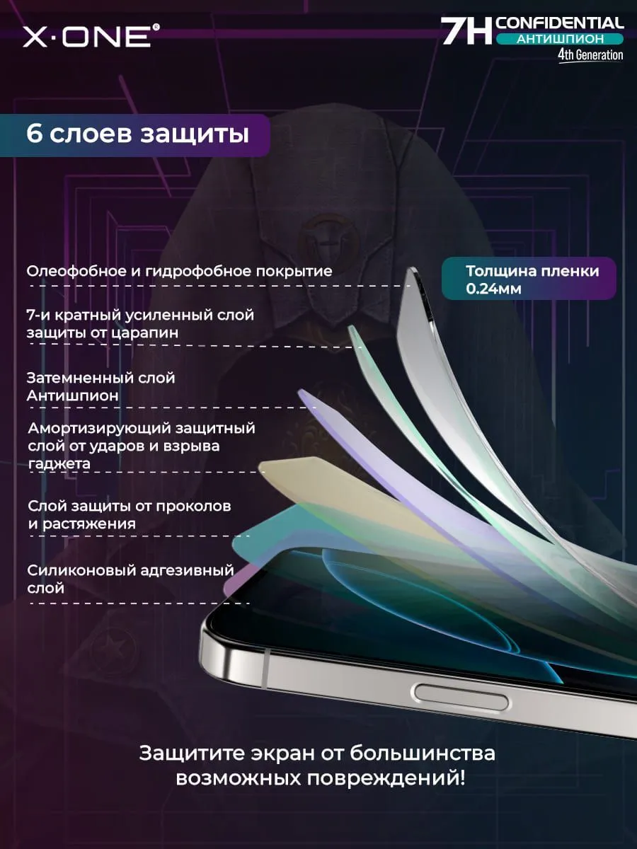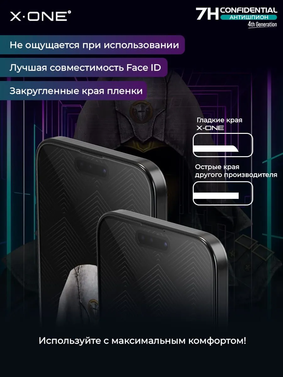 Непробиваемая бронепленка iPhone 14 Pro Max X-ONE Confidential 4rd-generation - Антишпион / защита от подглядывания