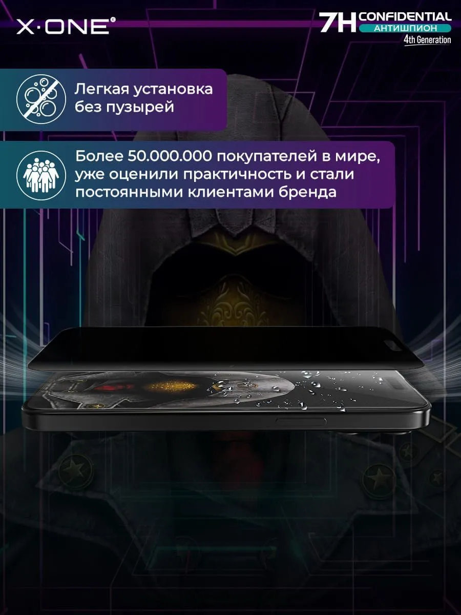 Противоударная защитная пленка с гарантией на экран вашего iPhone - 4 месяца X-ONE Confidential 4-го поколения — Антишпион / с защитой от подглядывания, на ощупь и по плотности, как стекло — пленка антишпион.