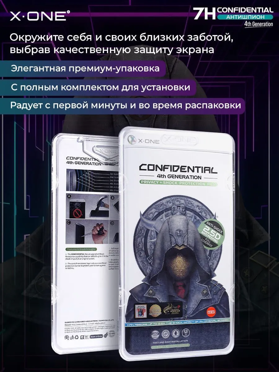 Противоударная защитная пленка с гарантией на экран вашего iPhone - 4 месяца X-ONE Confidential 4-го поколения — Антишпион / с защитой от подглядывания, на ощупь и по плотности, как стекло — пленка антишпион.