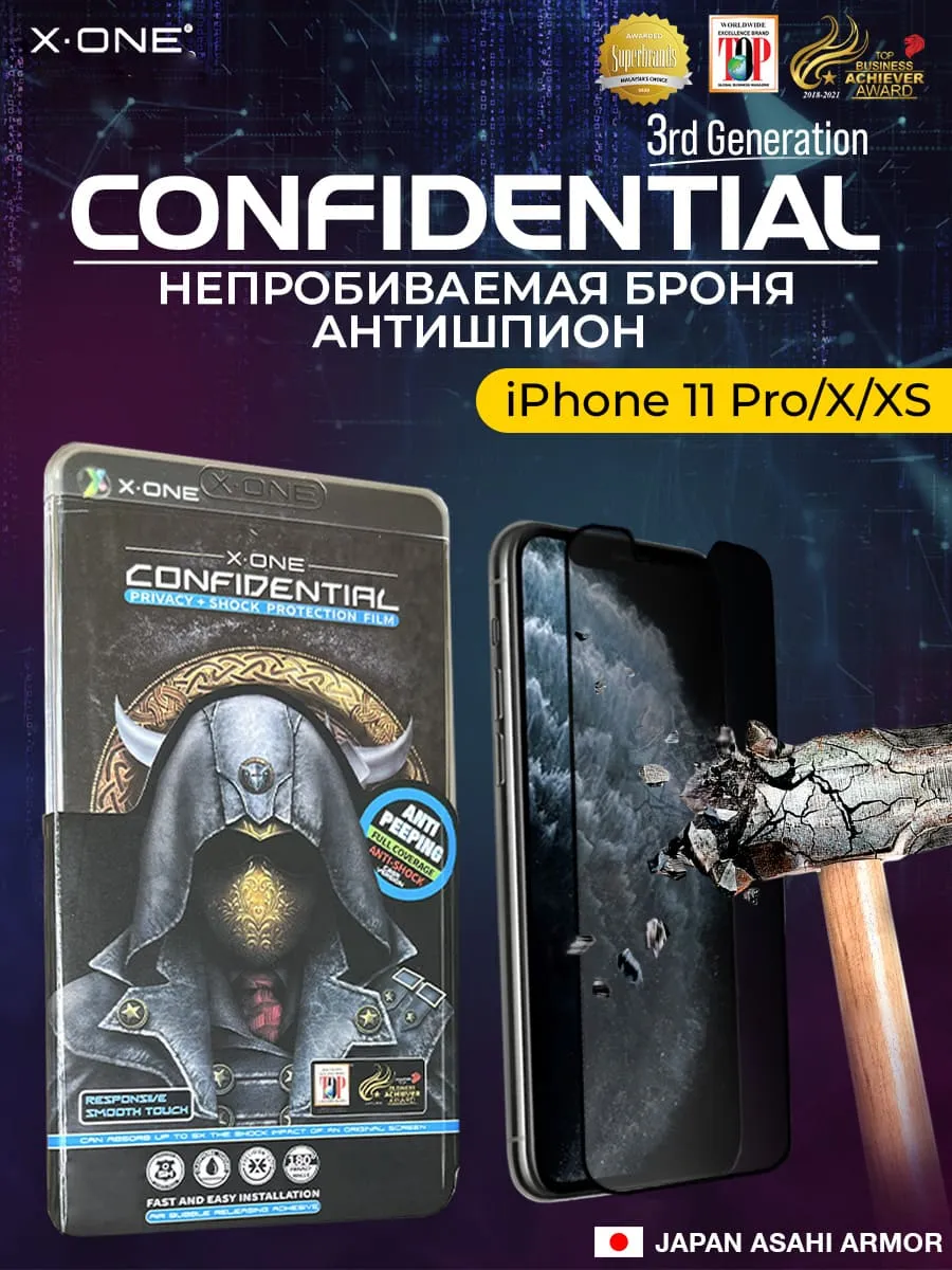 Непробиваемая бронепленка iPhone 11 Pro/X/XS Max X-ONE Confidential - Антишпион / защита от подглядывания