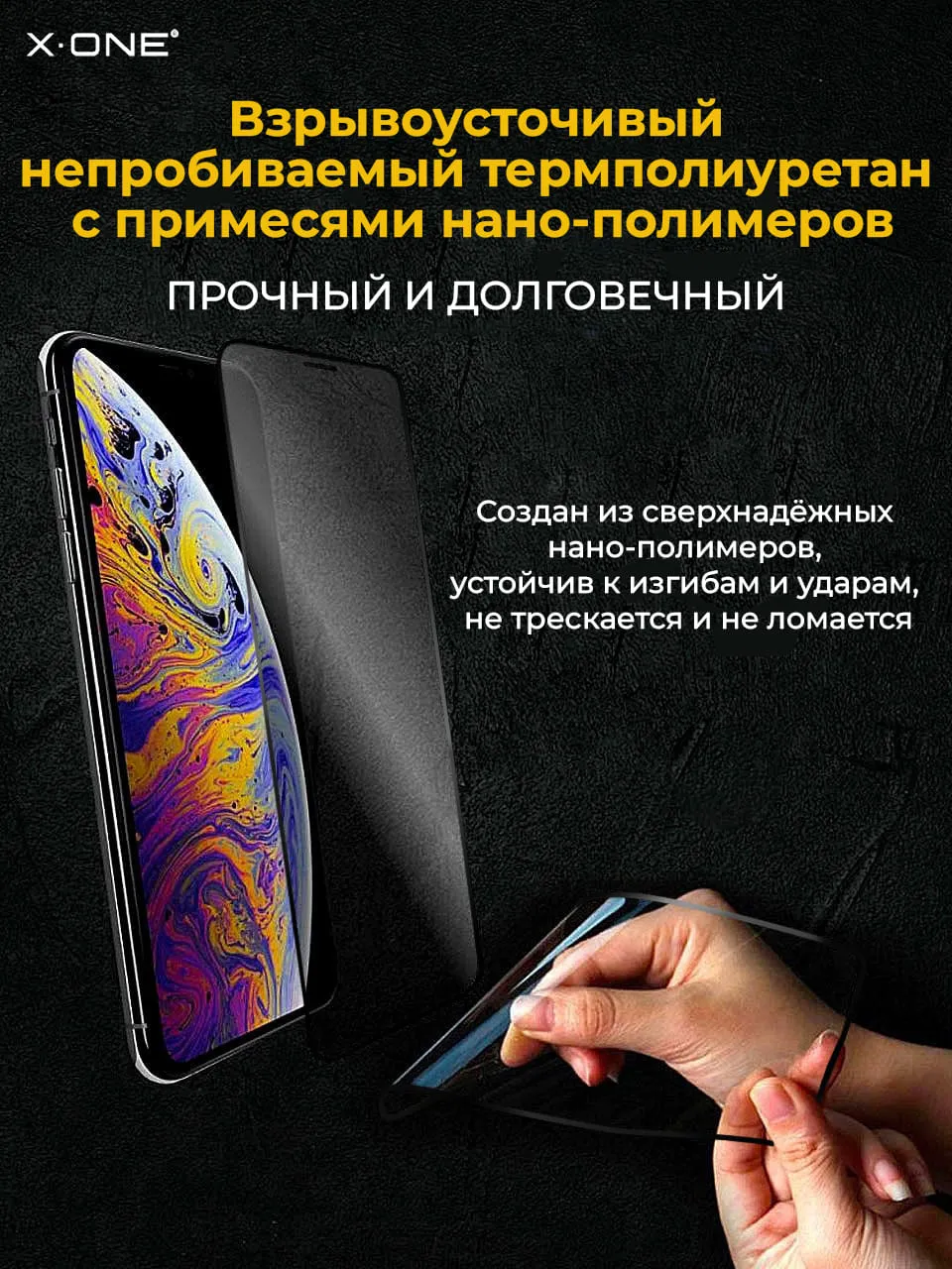 Противоударная бронепленка X-ONE Confidential — Антишпион / с защитой от подглядывания, на ощупь и по плотности, как стекло — пленка антишпион.