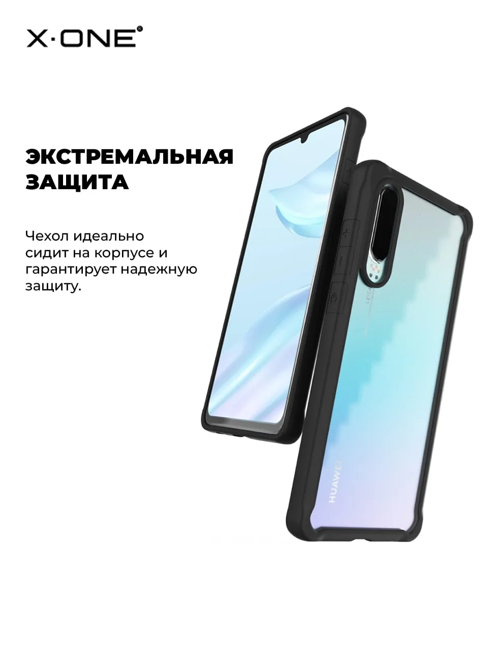Противоударный чехол X-ONE DropGuard 2.0 с прозрачной задней панелью и черным матовым Soft-Touch бампером + в комплекте карбоновый стикер для установки на заднюю панель по усмотрению.