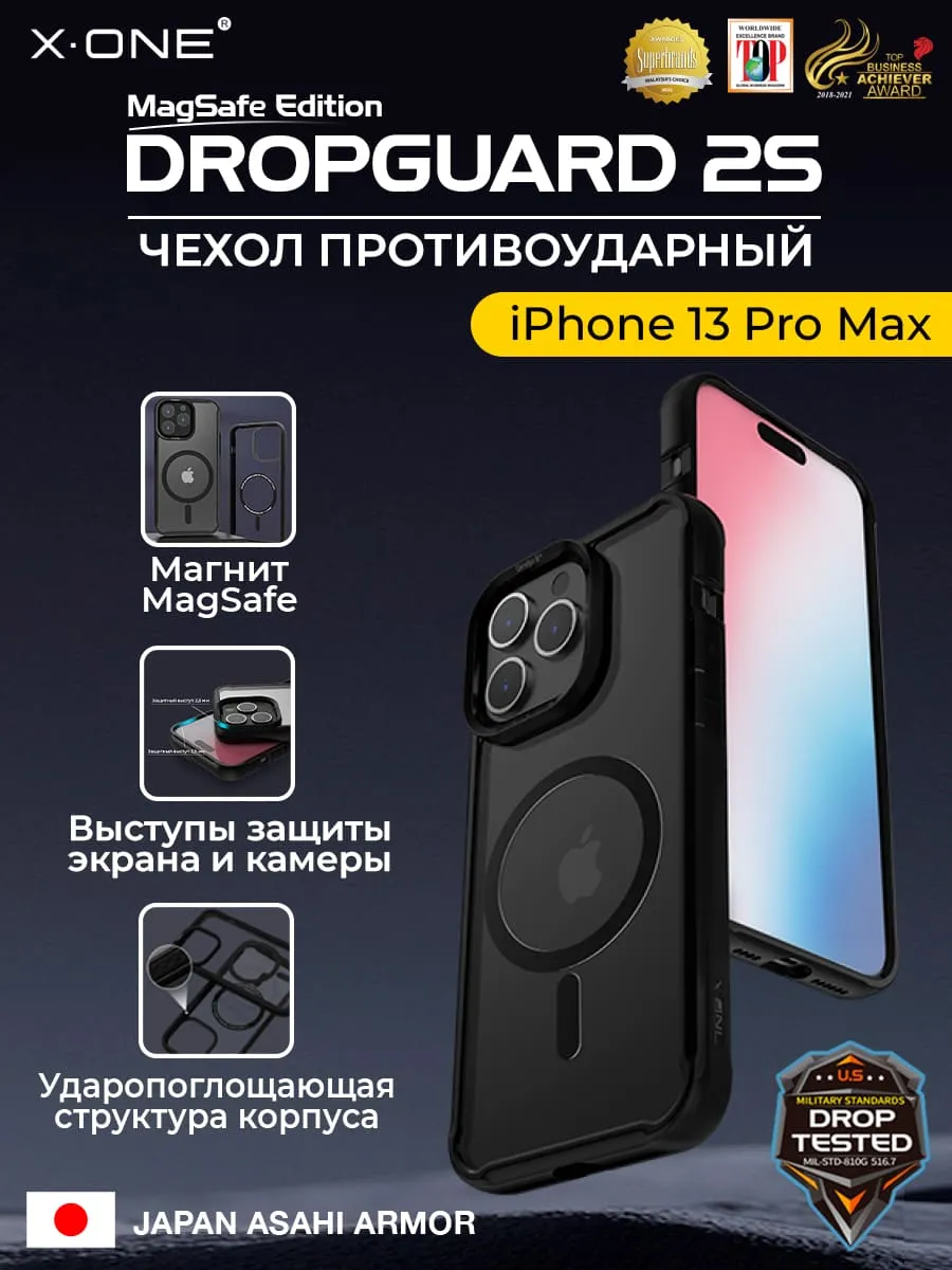 Чехол iPhone 13 Pro Max X-ONE DropGuard 2S MagSafe - прозрачная задняя панель и черный матовый бампер
