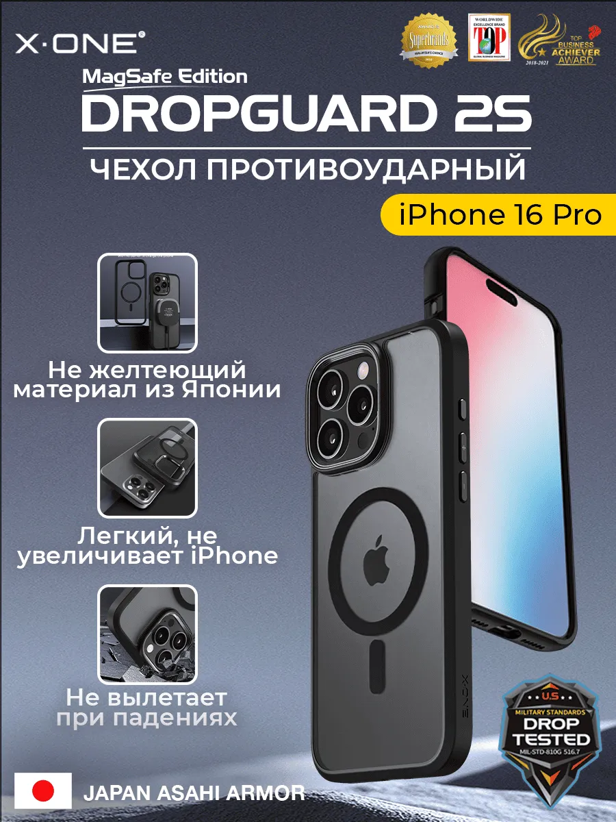 Чехол iPhone 16 Pro X-ONE DropGuard 2S MagSafe - прозрачная задняя панель и черный матовый бампер