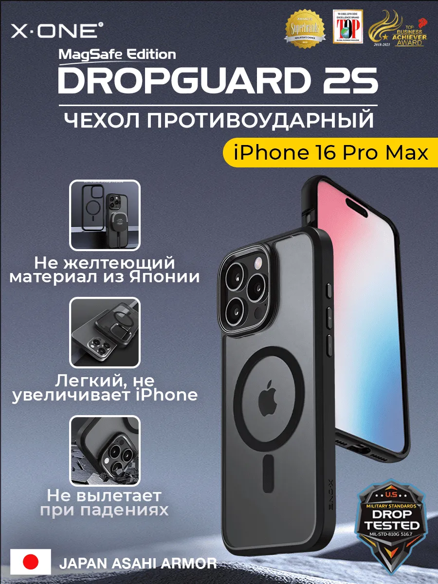 Чехол iPhone 16 Pro Max X-ONE DropGuard 2S MagSafe - прозрачная задняя панель и черный матовый бампер