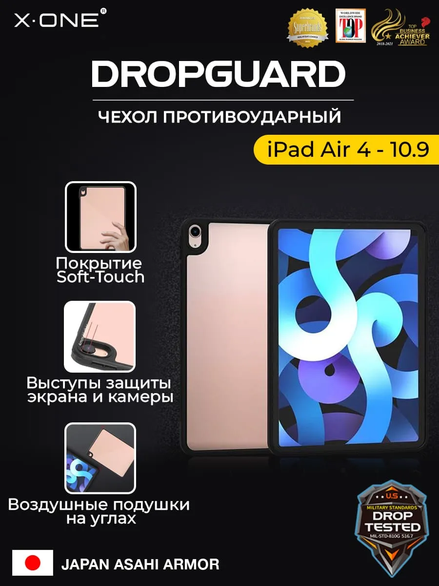Чехол iPad Air 4 - 10.9" X-ONE DropGuard - с черным матовым Soft Touch бампером