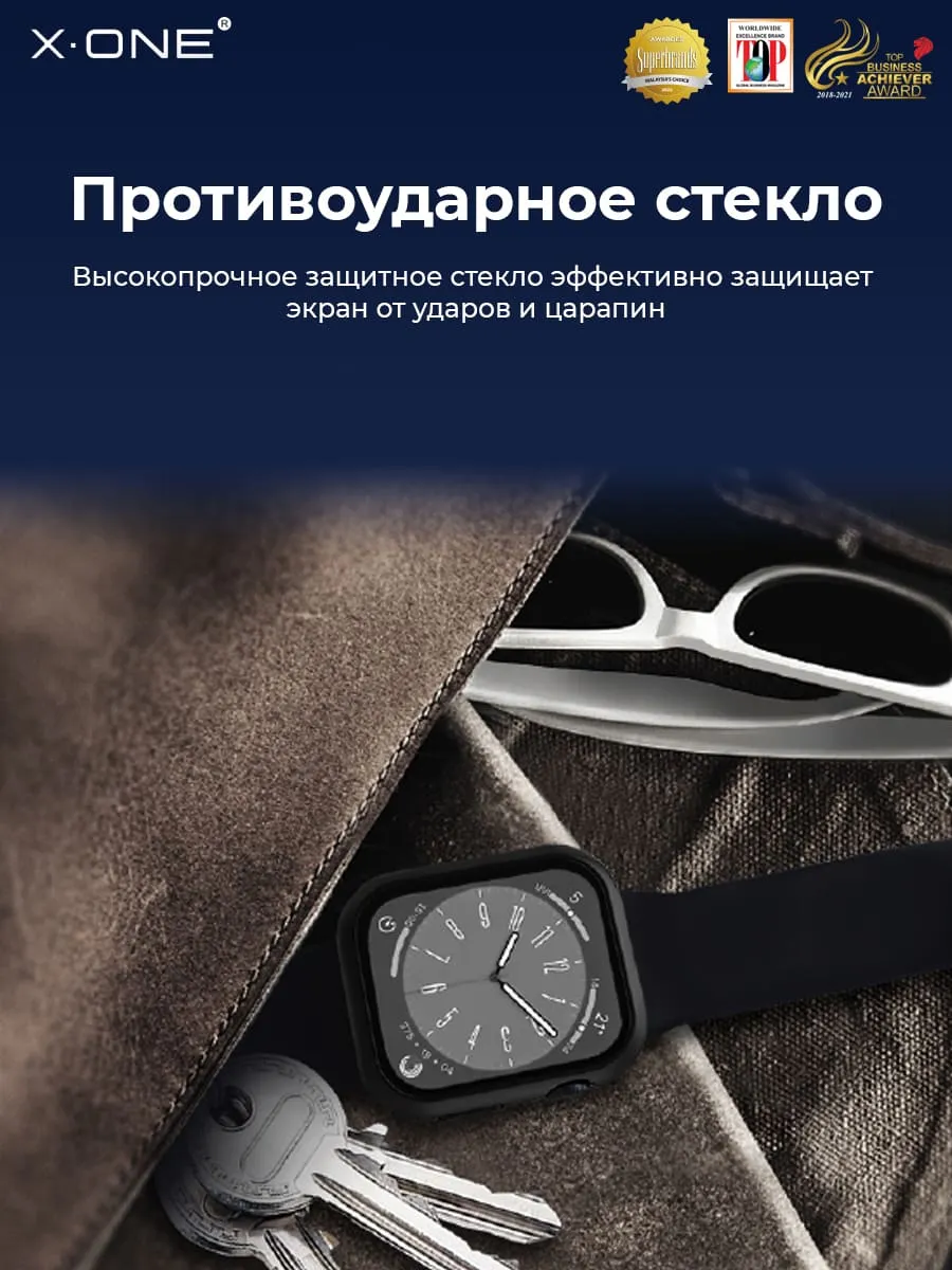 Чехол для часов X-ONE DropGuard - обтекаемый корпус с противоударным Soft-Touch матовым бампером и стеклом для защиты экрана.