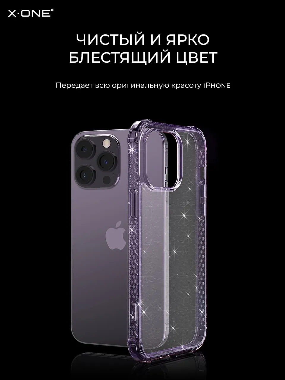 Прозрачный - блестящий чехол X-ONE DropGuard PRO Glitter с текстурированным боковым корпусом.