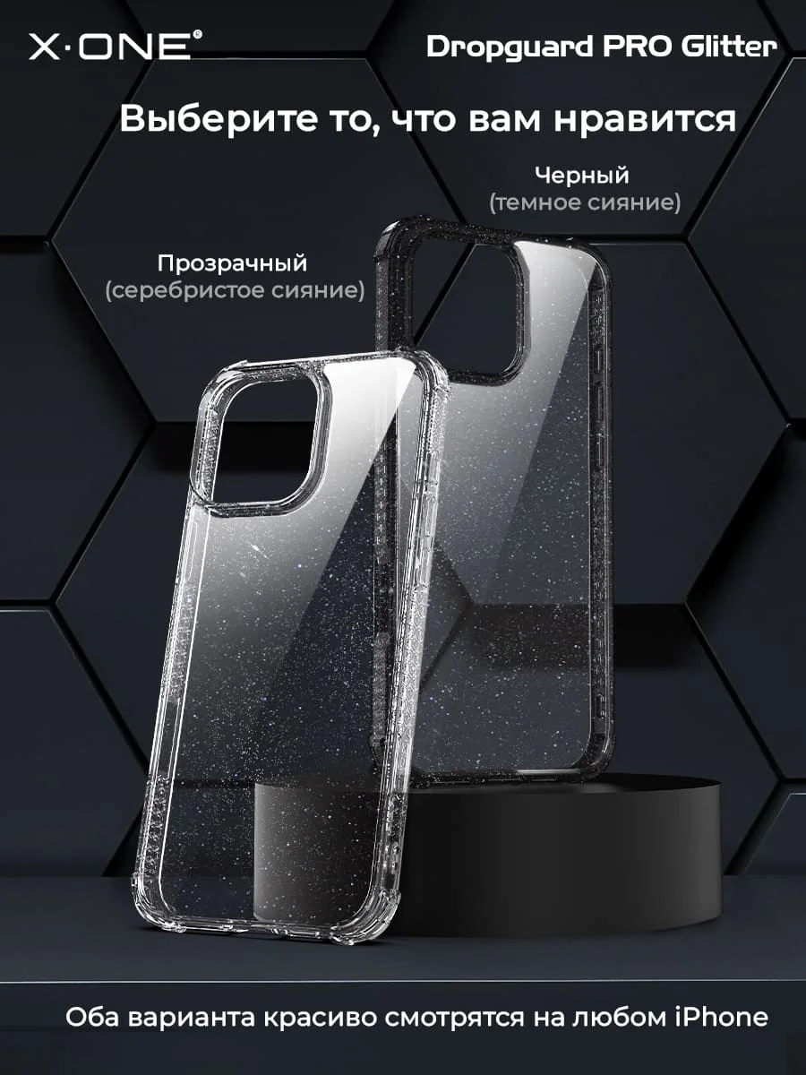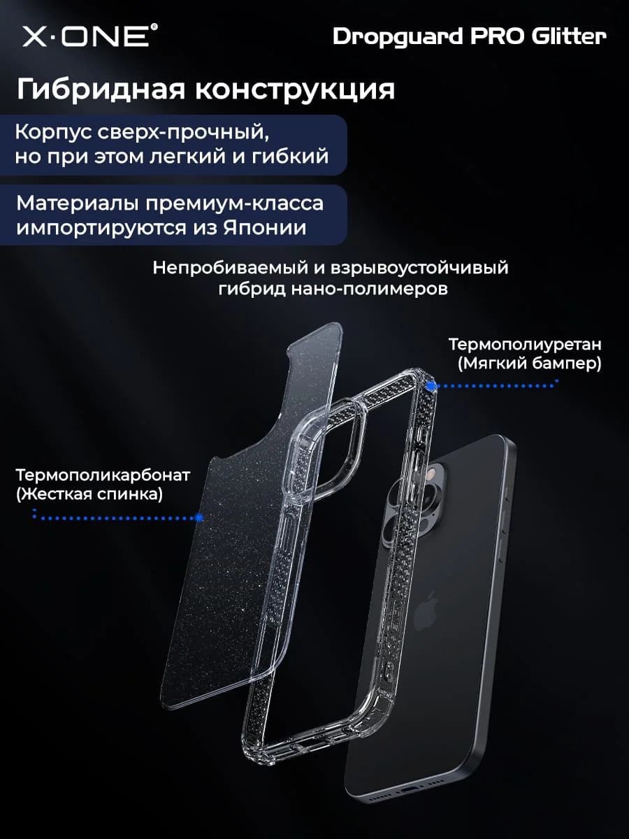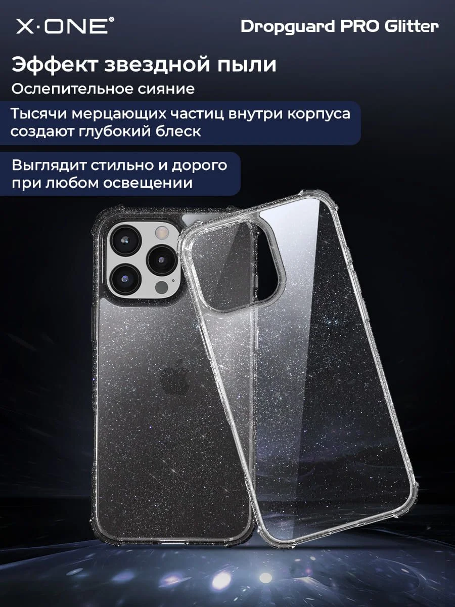 Прозрачный - блестящий чехол X-ONE DropGuard PRO Glitter с текстурированным боковым корпусом с блестками.