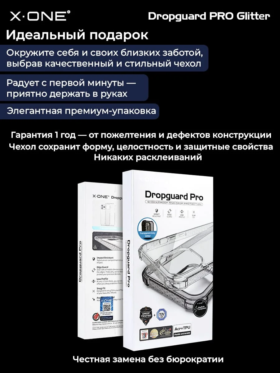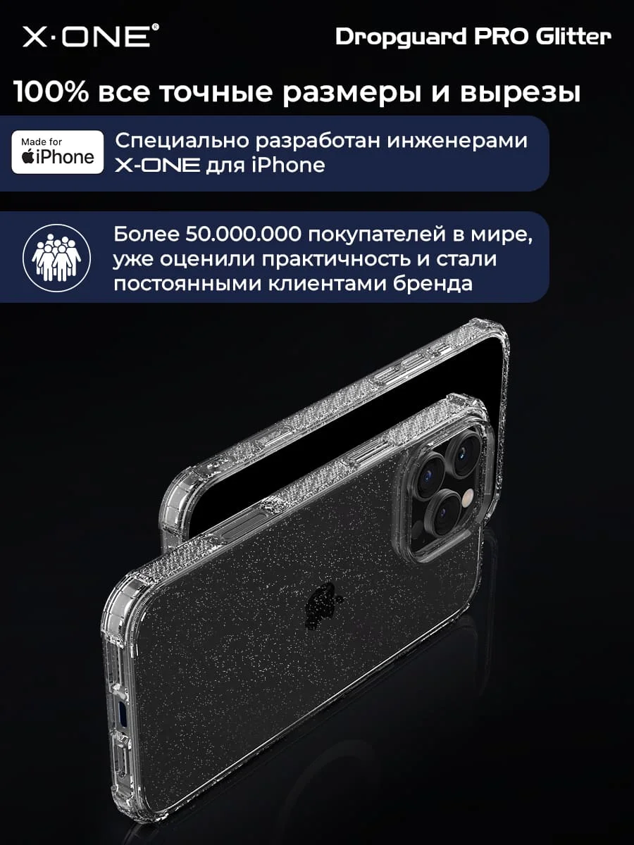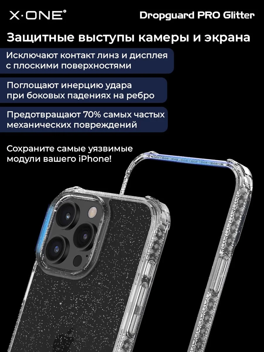 Прозрачный - блестящий чехол X-ONE DropGuard PRO Glitter с текстурированным боковым корпусом с блестками.