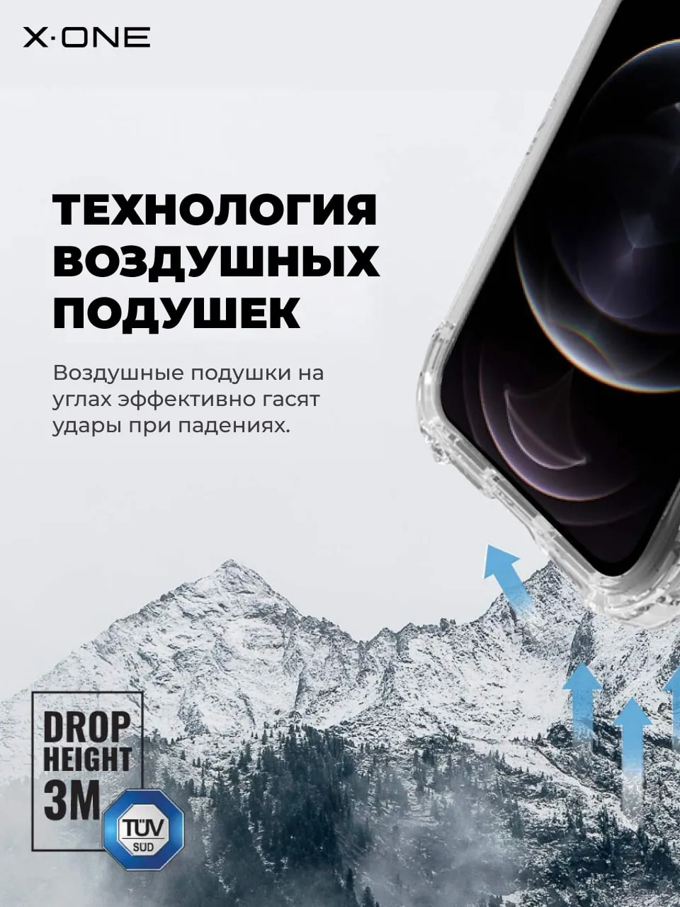 Прозрачный чехол X-ONE DropGuard PRO с текстурированным боковым корпусом.