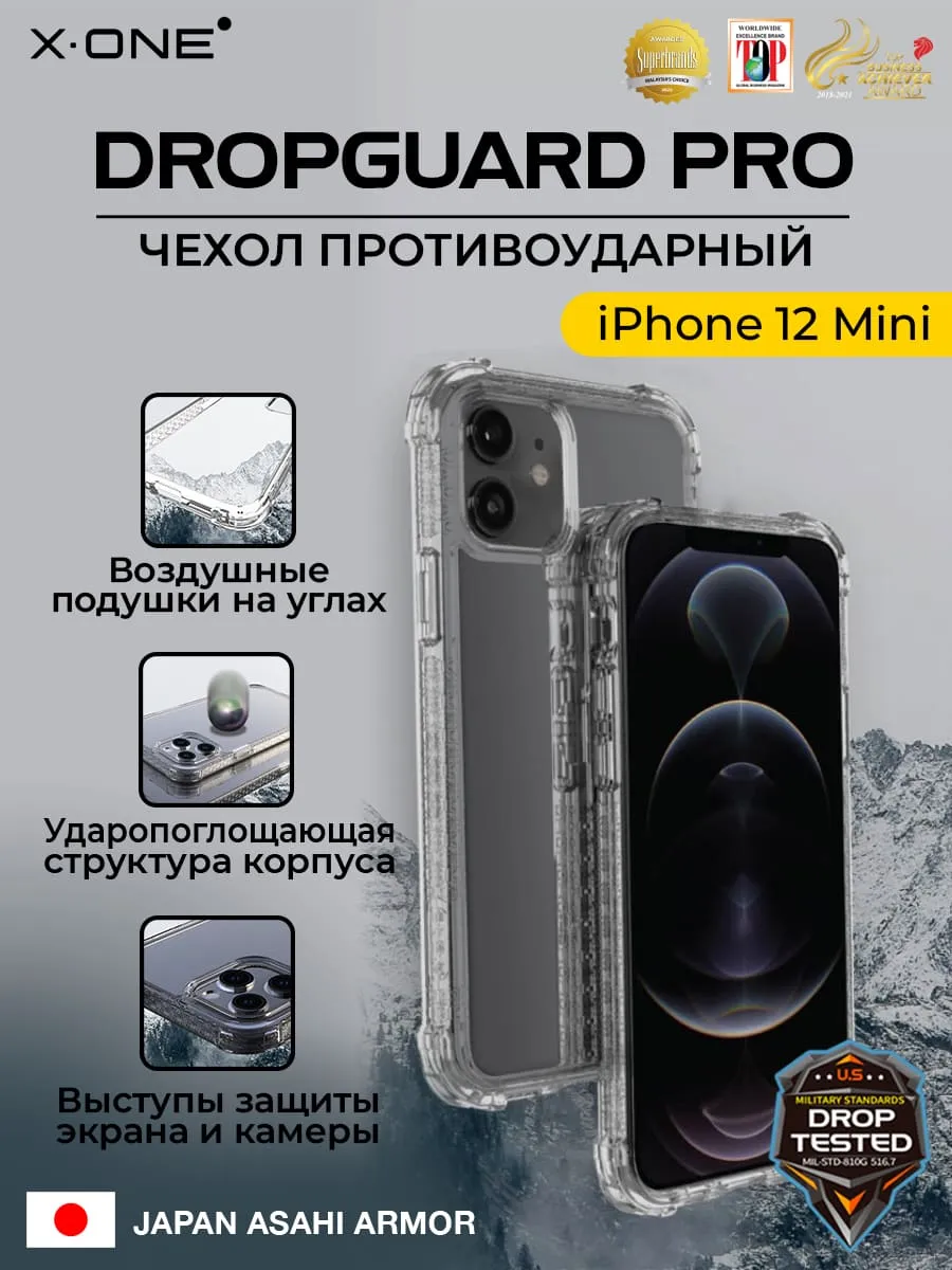Чехол iPhone 12 Mini X-ONE DropGuard 2.0 - прозрачная задняя панель и черный матовый Soft Touch бампер
