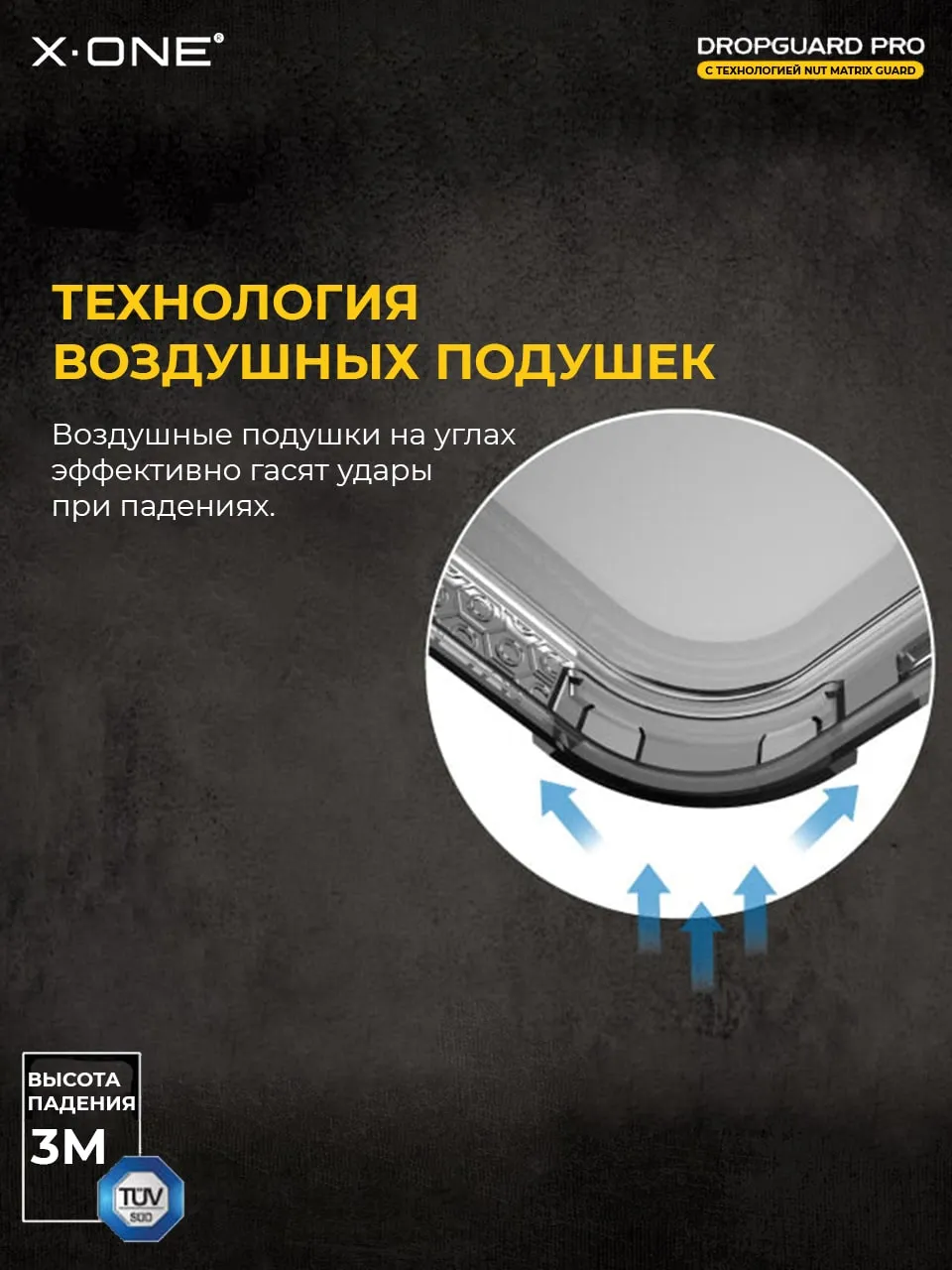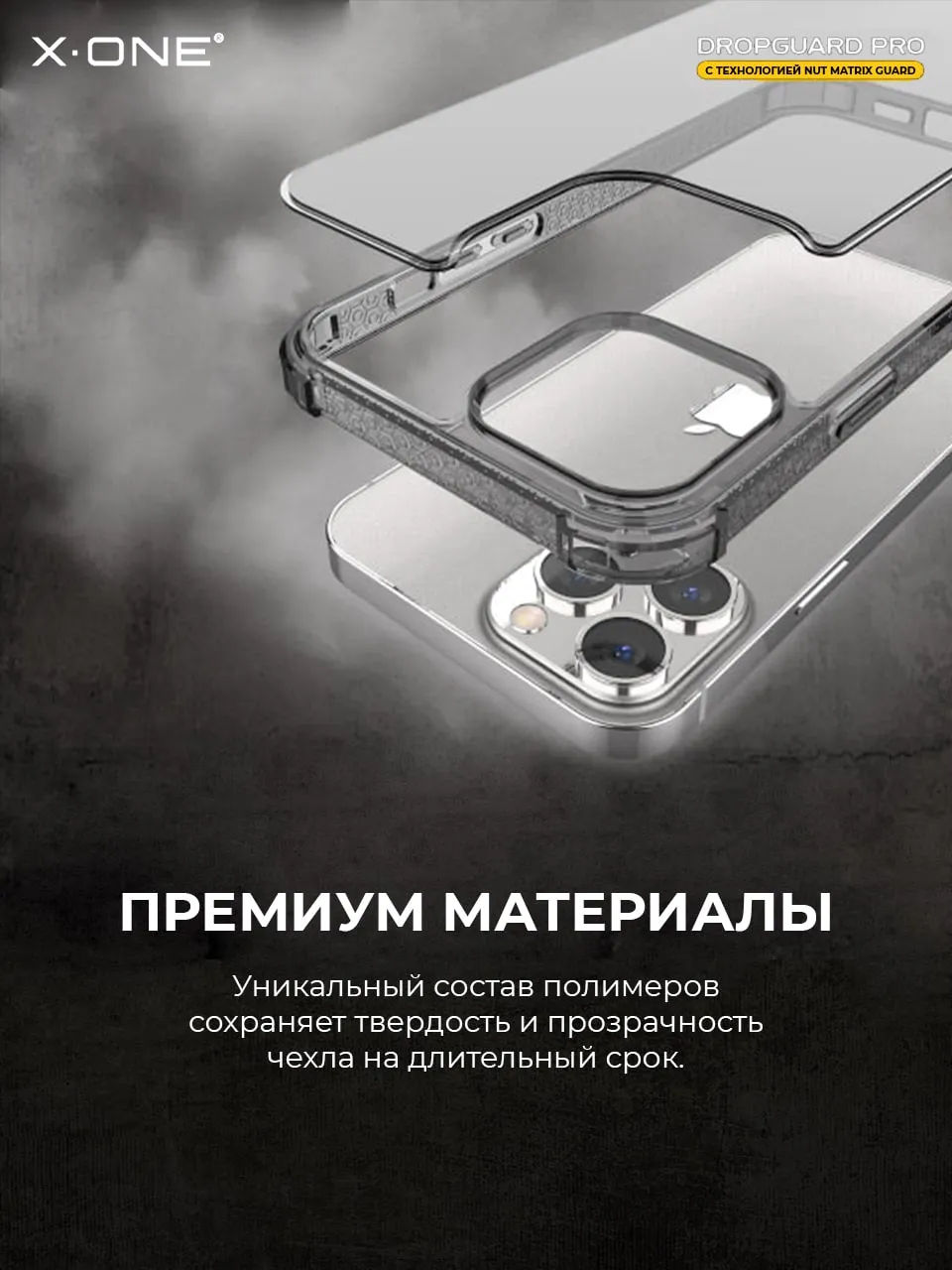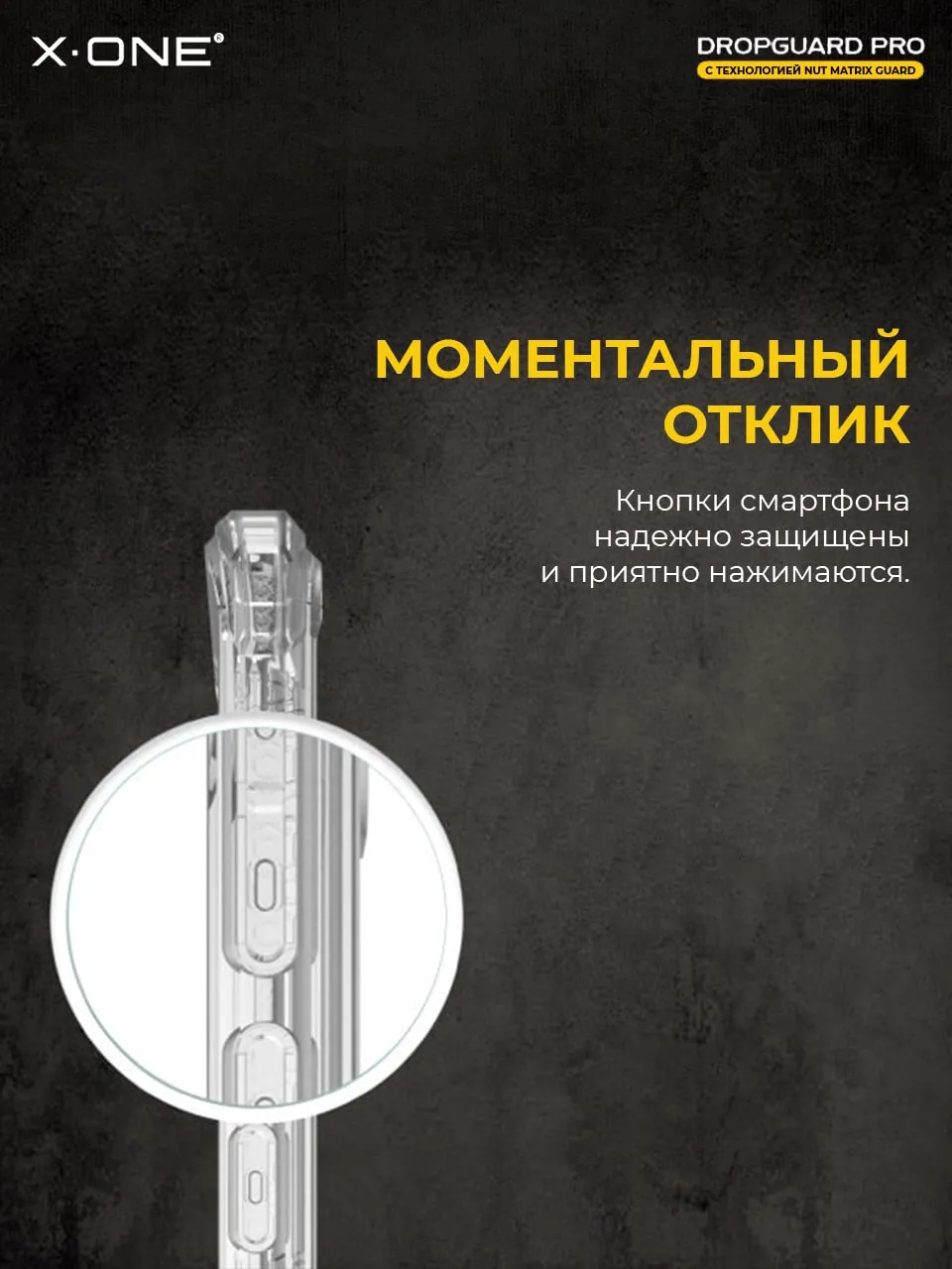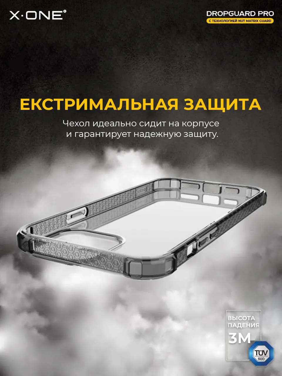 Прозрачный чехол X-ONE DropGuard PRO с текстурированным боковым корпусом и закрытым блоком камеры.
