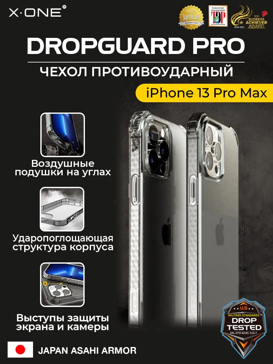 Чехол iPhone 13 Pro Max X-ONE DropGuard 2S - прозрачная задняя панель и черный матовый Soft Touch бампер