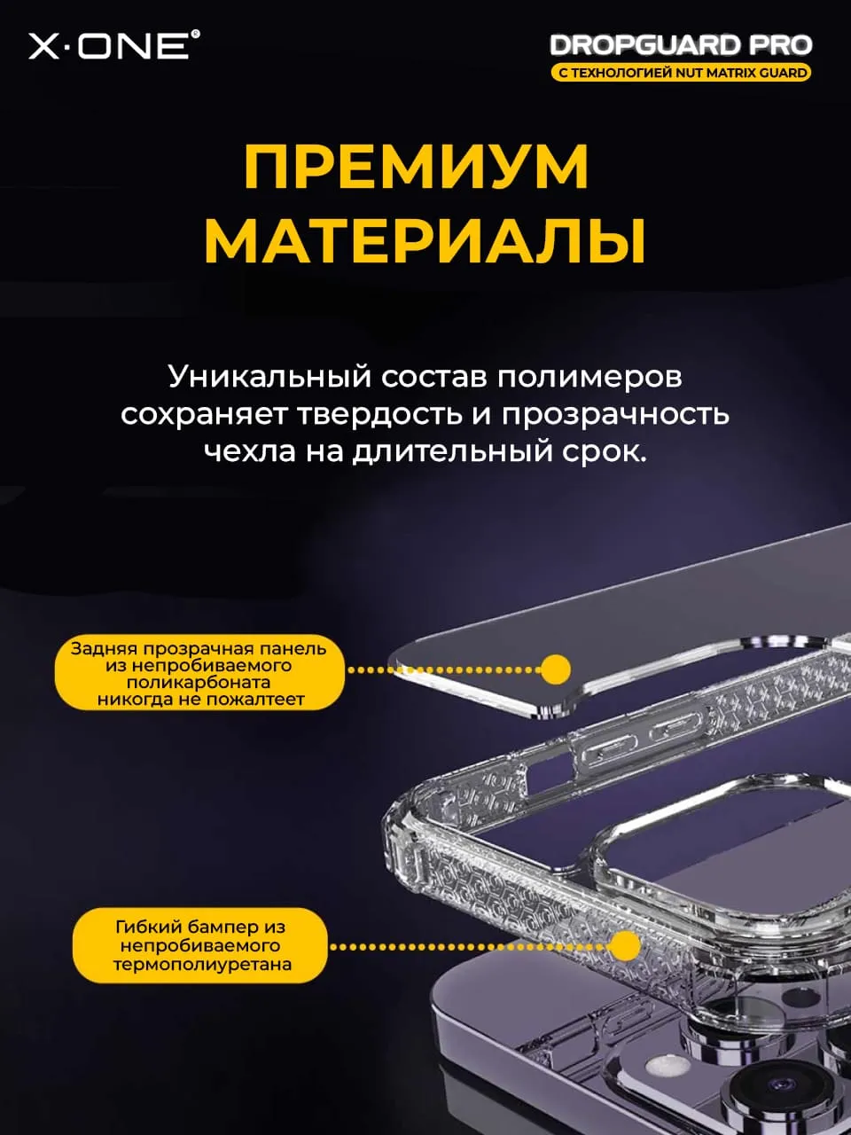 Прозрачный чехол X-ONE DropGuard PRO с текстурированным боковым корпусом.