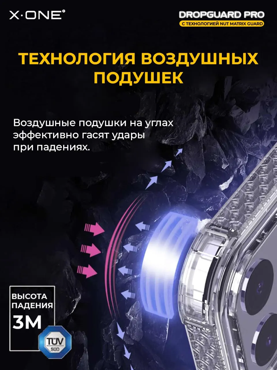 Прозрачный чехол X-ONE DropGuard PRO с текстурированным боковым корпусом.